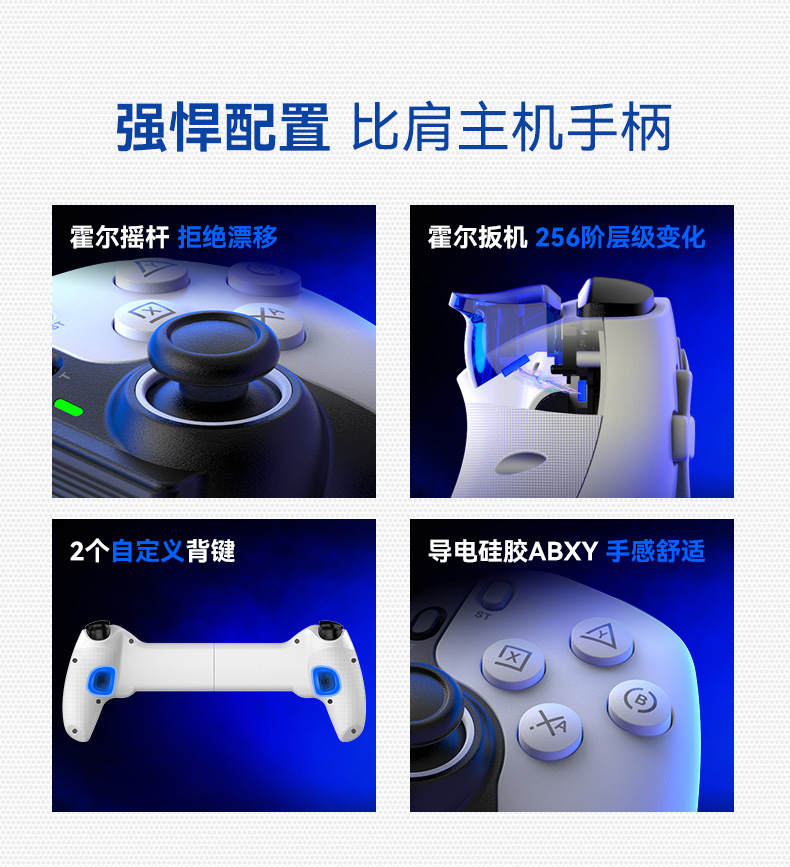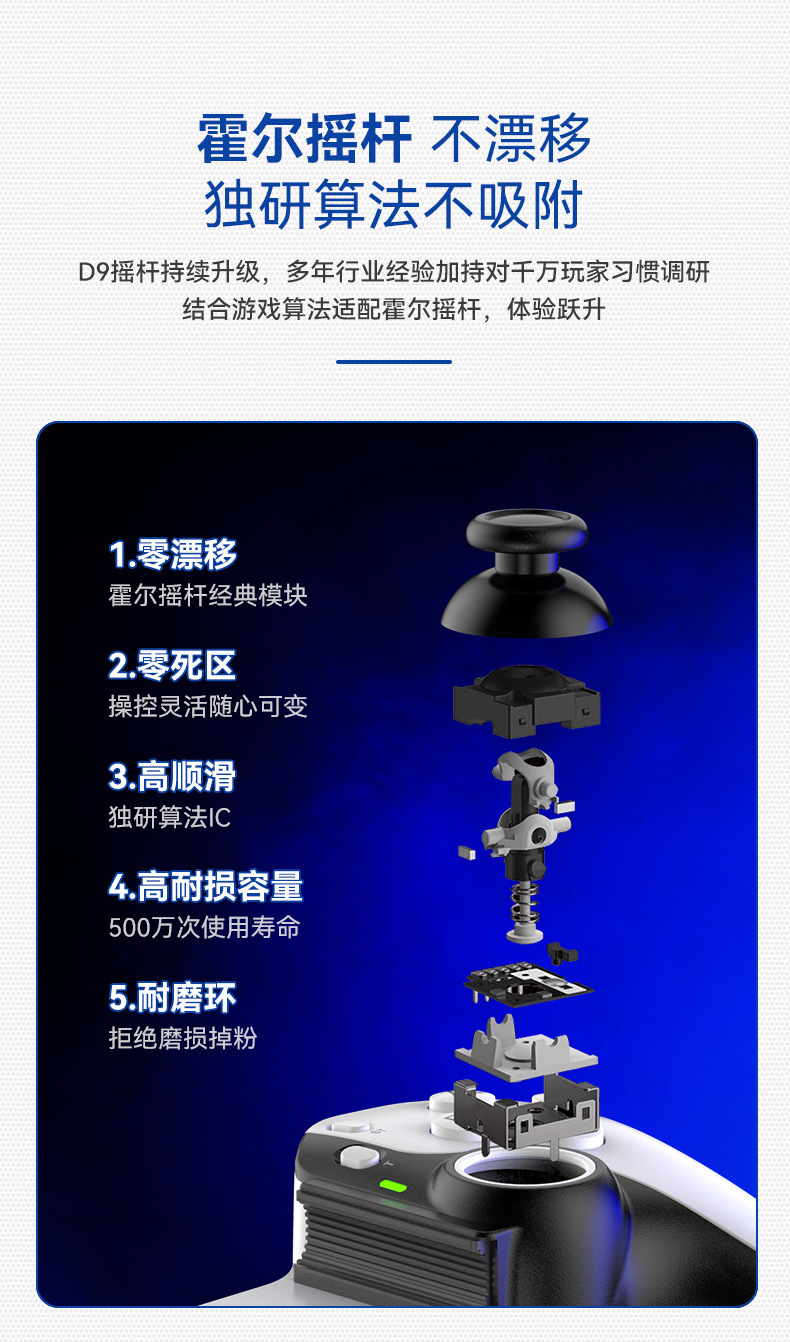 2.霍尔扳机、霍尔摇杆:零漂移、零死区、高顺滑、高耐损容量、耐磨环。