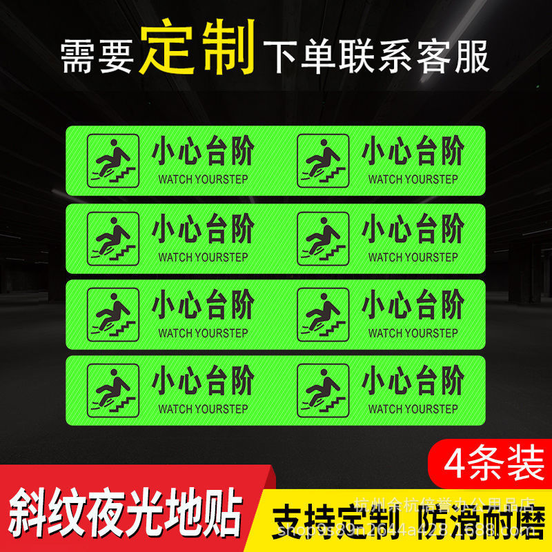 계단 발광 스티커 미끄럼 방지 안전 팁 슬로건 PVC 트윌 방수 좁은 바닥 스티커 로고 스티커를 조심하십시오.스토어 가기