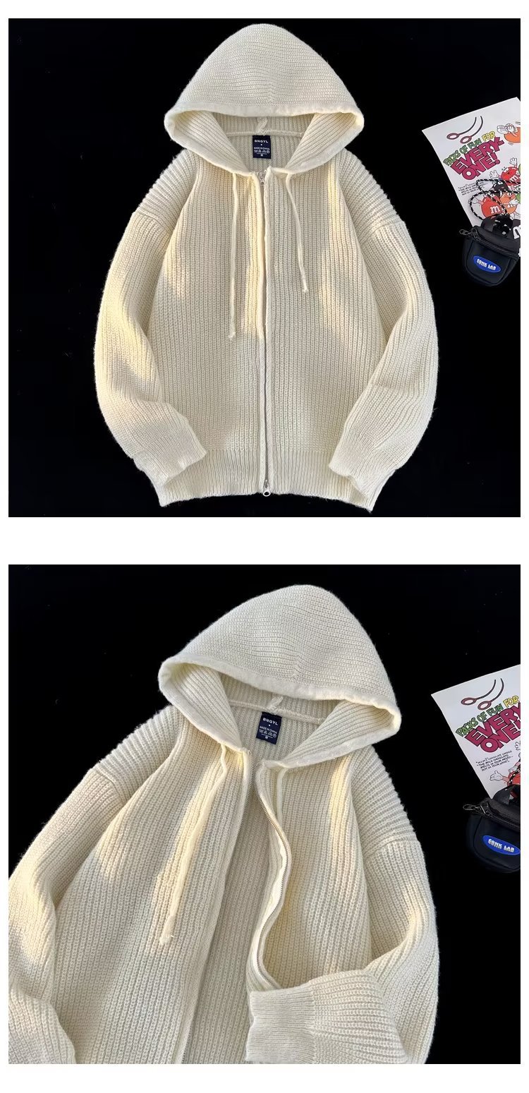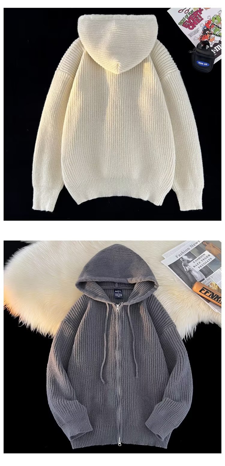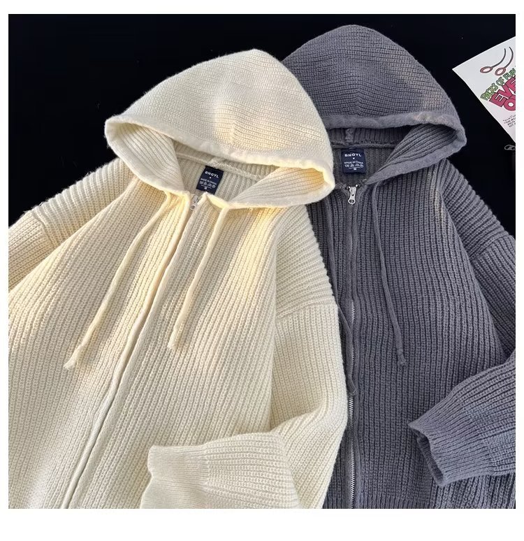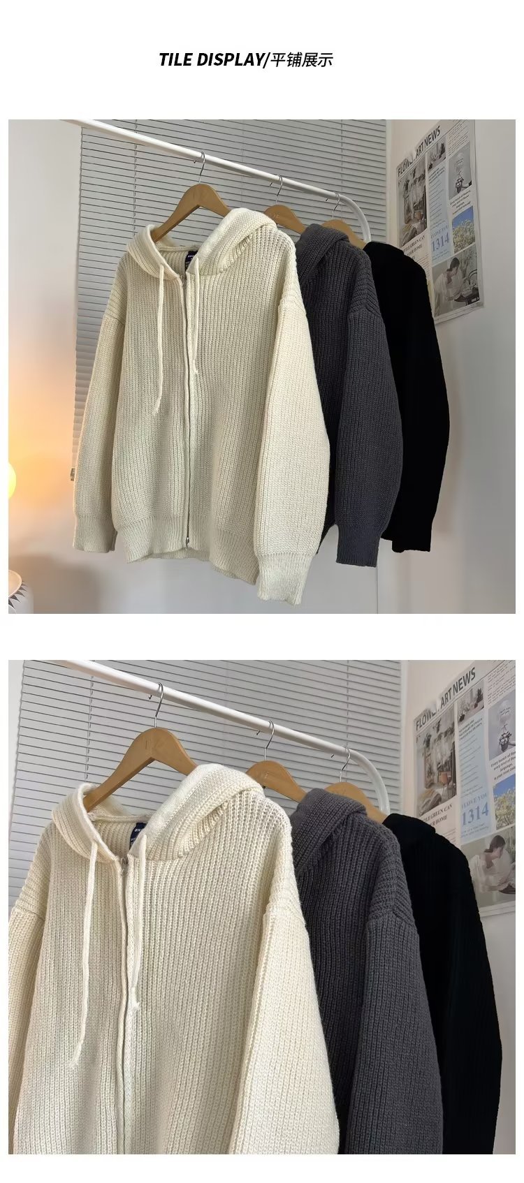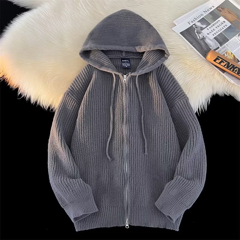 스웨터 남성 가을과 겨울 뉴 홍콩 스타일의 트렌디 한 느슨한 스웨터 코트 남성과 여성의 세련된 지퍼 후드 카디건 탑