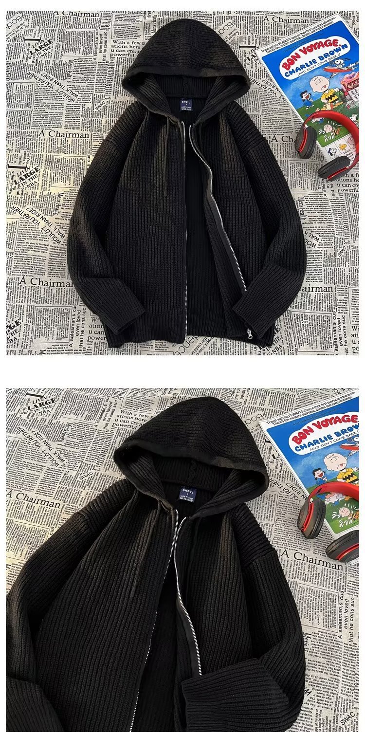 스웨터 남성 가을과 겨울 뉴 홍콩 스타일의 트렌디 한 느슨한 스웨터 코트 남성과 여성의 세련된 지퍼 후드 카디건 탑스토어 가기