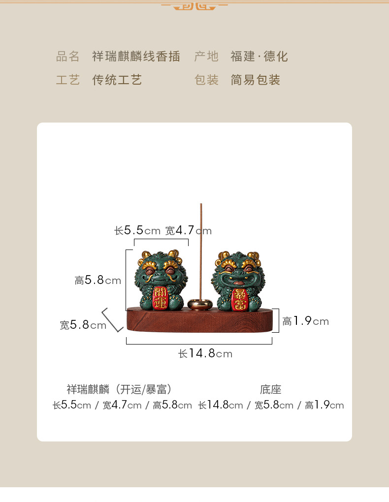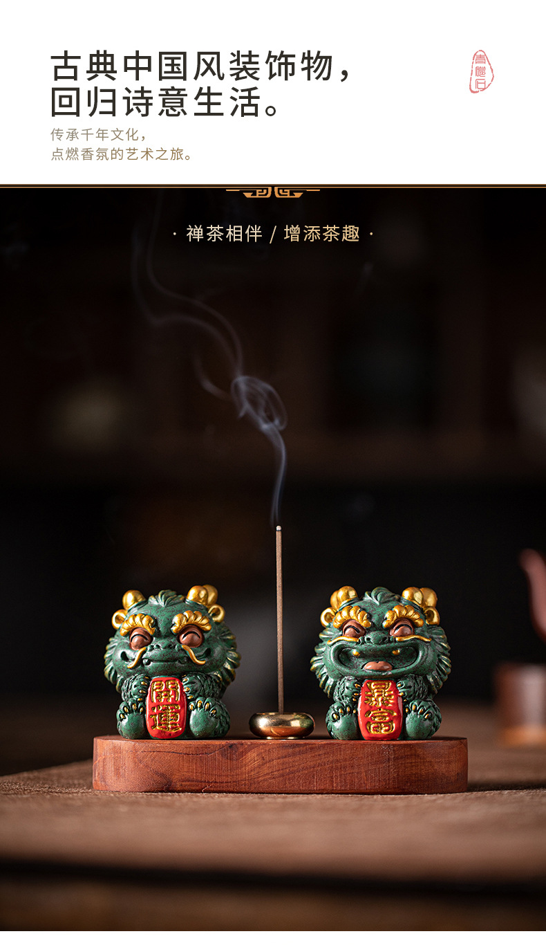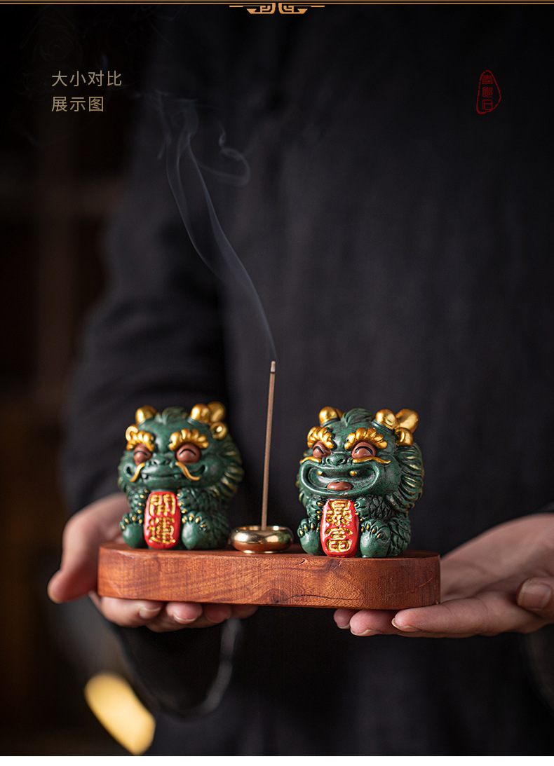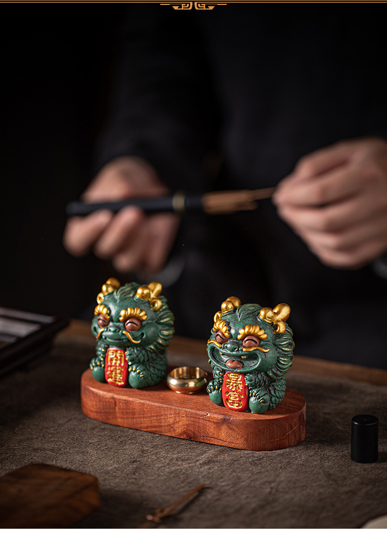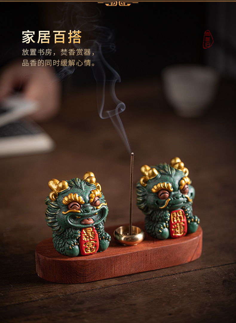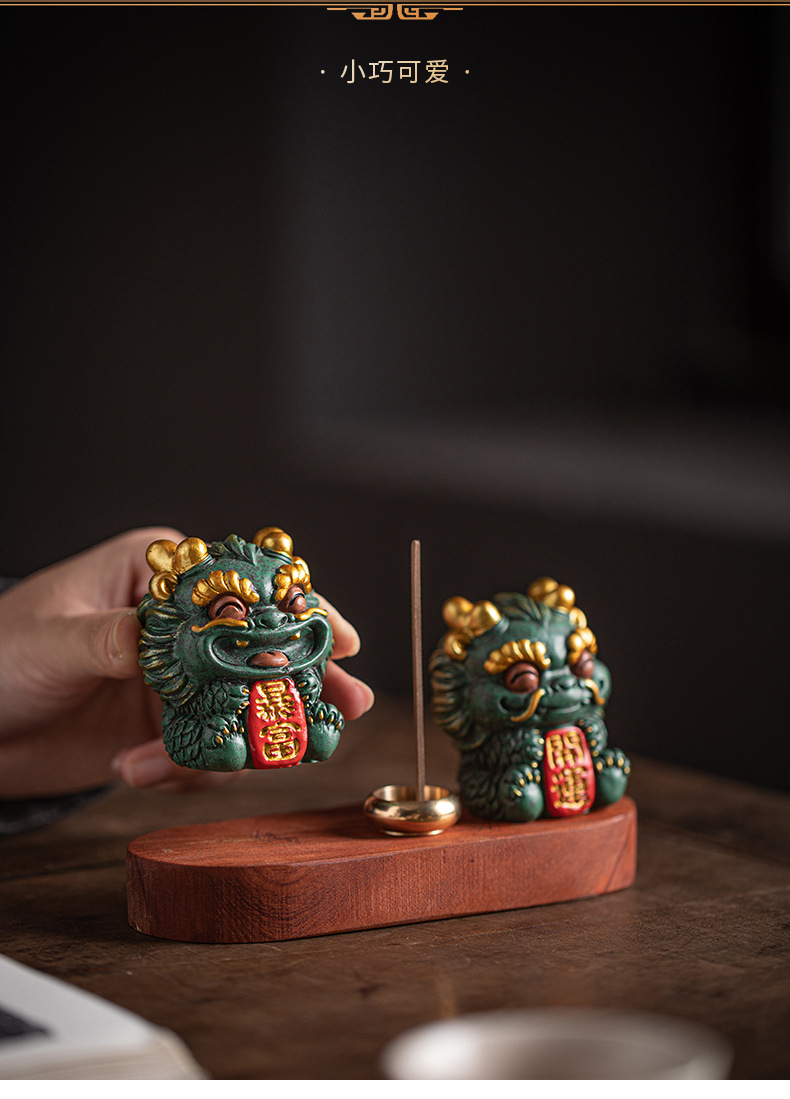 창조적 인 조디악 드래곤 키린 마스코트 홈 장식 실 향 티 테이블 향 버너 향 홀더 차 애완 동물 장식