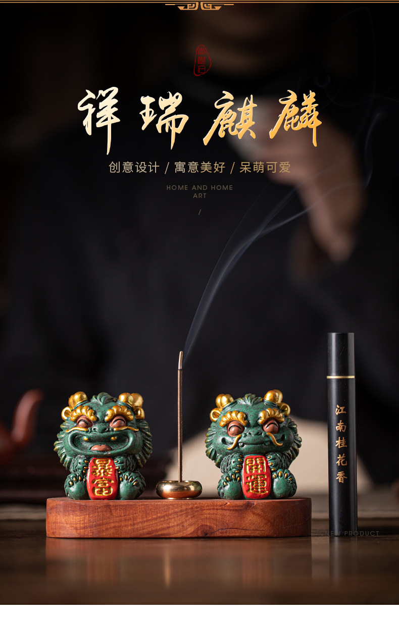 창조적 인 조디악 드래곤 키린 마스코트 홈 장식 실 향 티 테이블 향 버너 향 홀더 차 애완 동물 장식스토어 가기