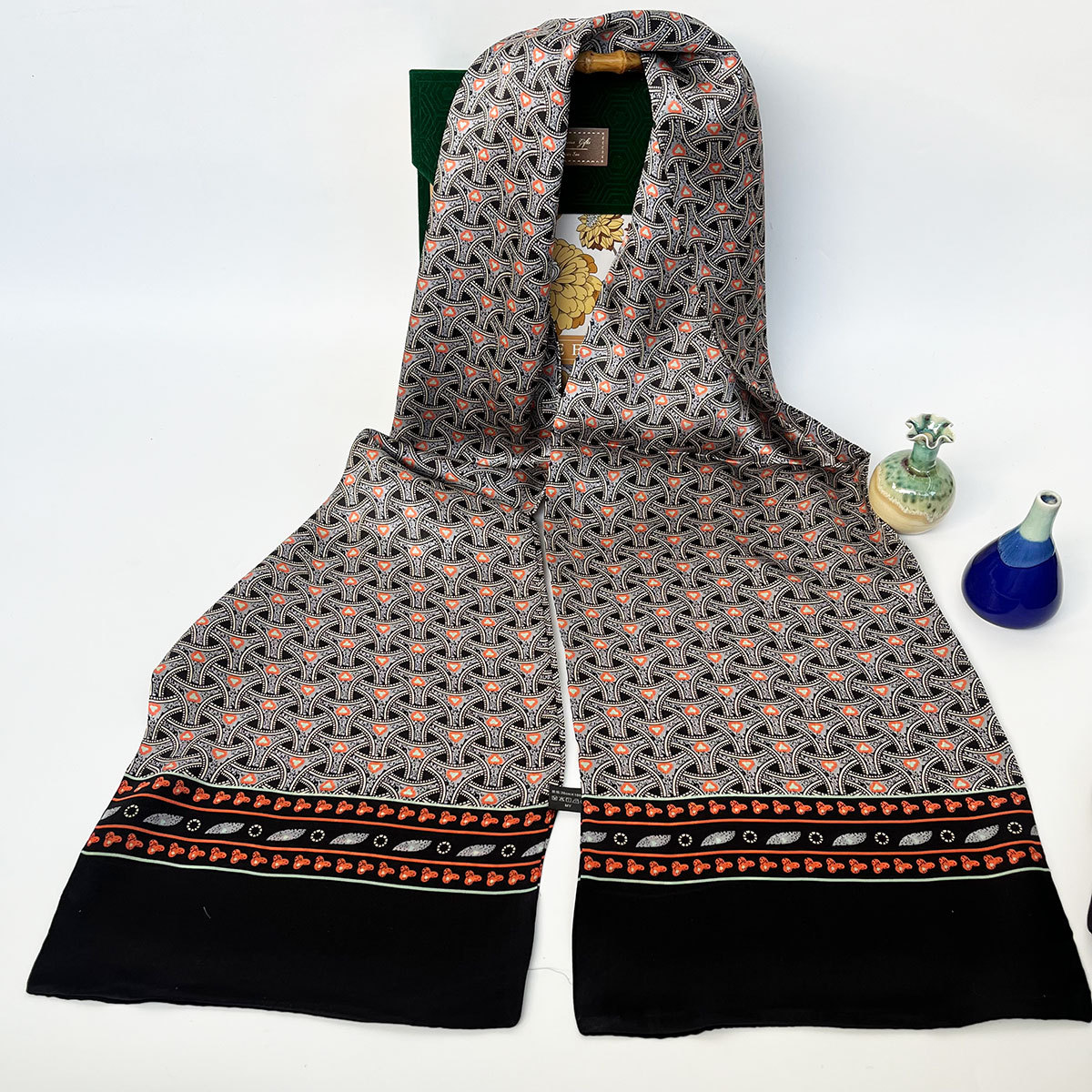 남성용 실크 스카프 100% 뽕나무 실크 스카프 가을과 겨울 따뜻한 더블 레이어 실크 남성용 스카프 남성용 스카프