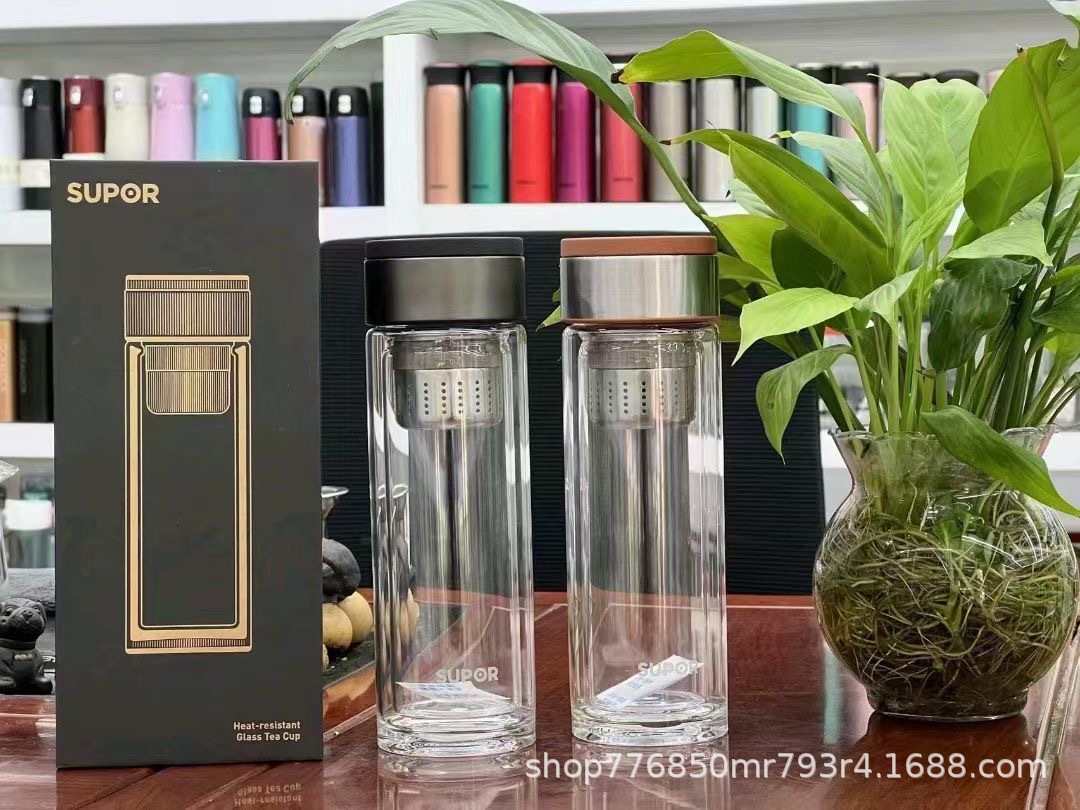 Supor KB38JF10 이중층 내열 유리 물 컵 티 컵 남자 비즈니스 오피스 컵 선물 상자스토어 가기