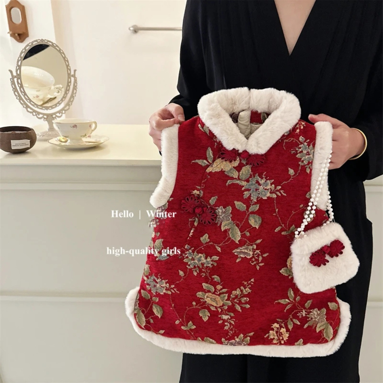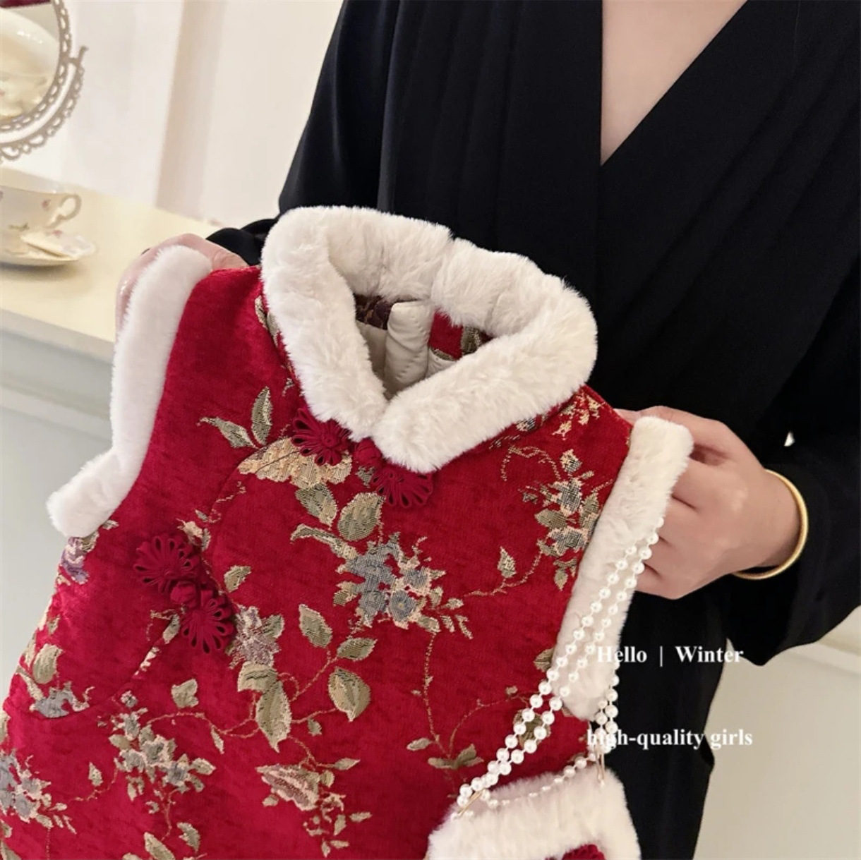 스팟 걸스 청삼 원피스 겨울 옷 새해 유행 서양식 한푸 어린이 아기 공주 새해 원피스