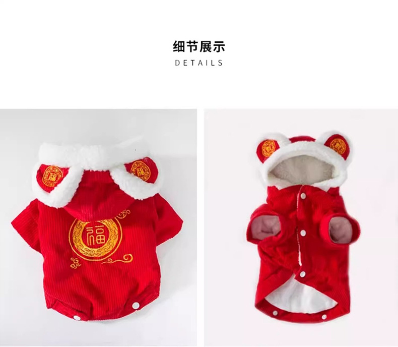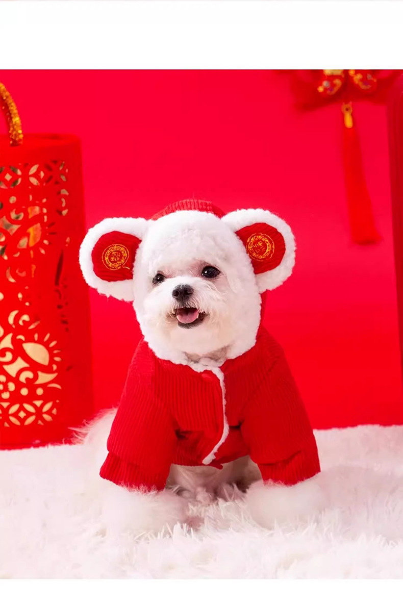 가을과 겨울 개 새해 푸 캐릭터 행운의 따뜻한 람스울 코튼 패딩 코트 고양이 재킷 새해 축제 애완 동물 개 옷스토어 가기