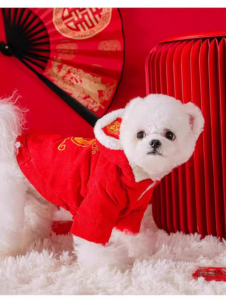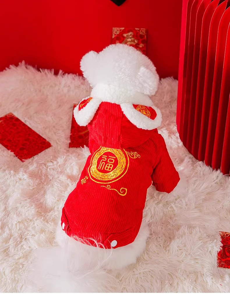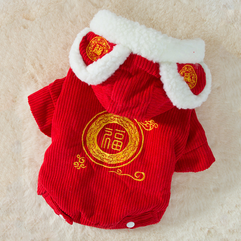 가을과 겨울 개 새해 푸 캐릭터 행운의 따뜻한 람스울 코튼 패딩 코트 고양이 재킷 새해 축제 애완 동물 개 옷
