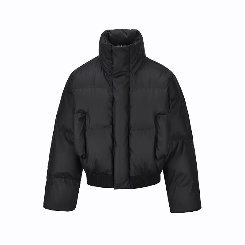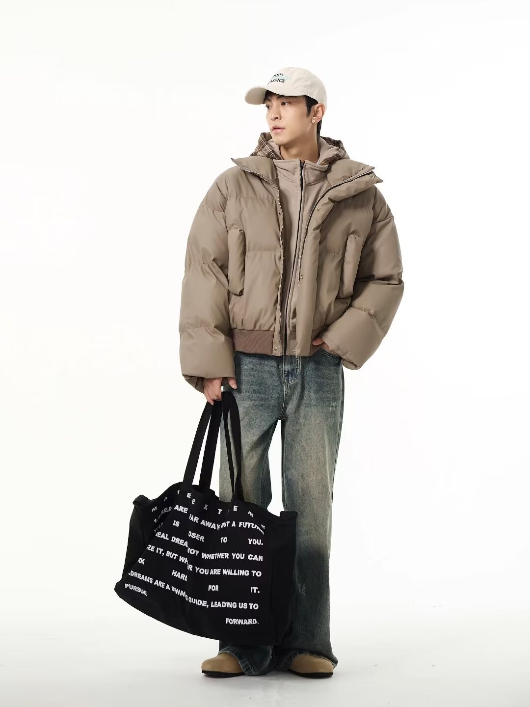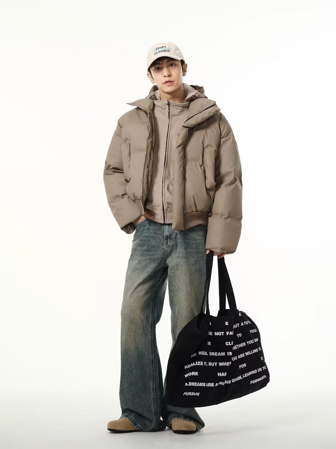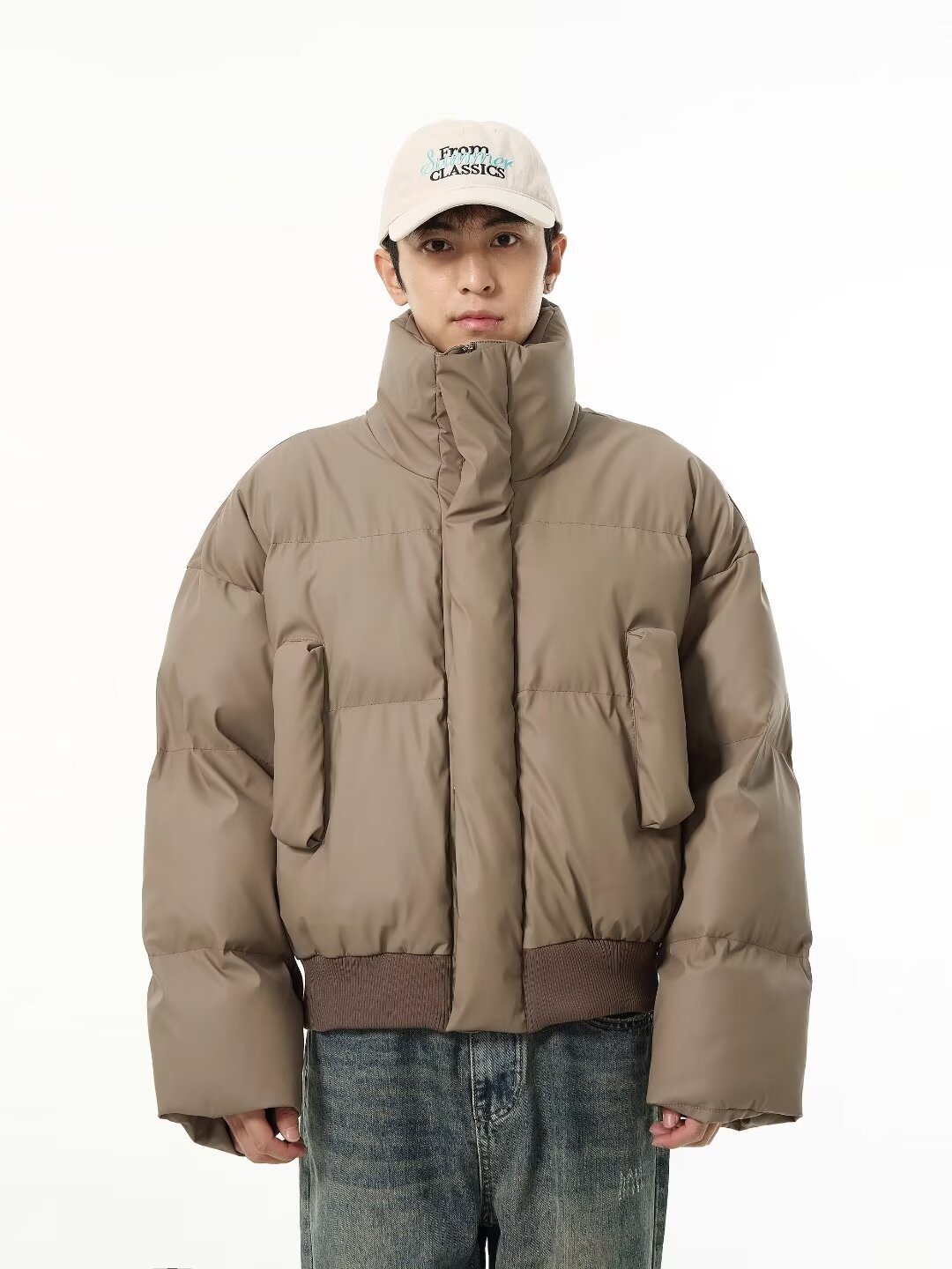 2024 새로운 미국 겨울 복고풍 짧은면 패딩 코트 남성의 세련된 고급 디자인은 연인을위한 두꺼운 다크 브라운 코트스토어 가기