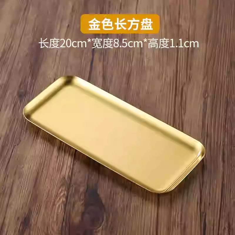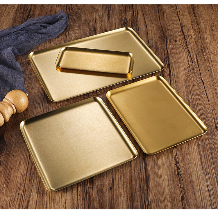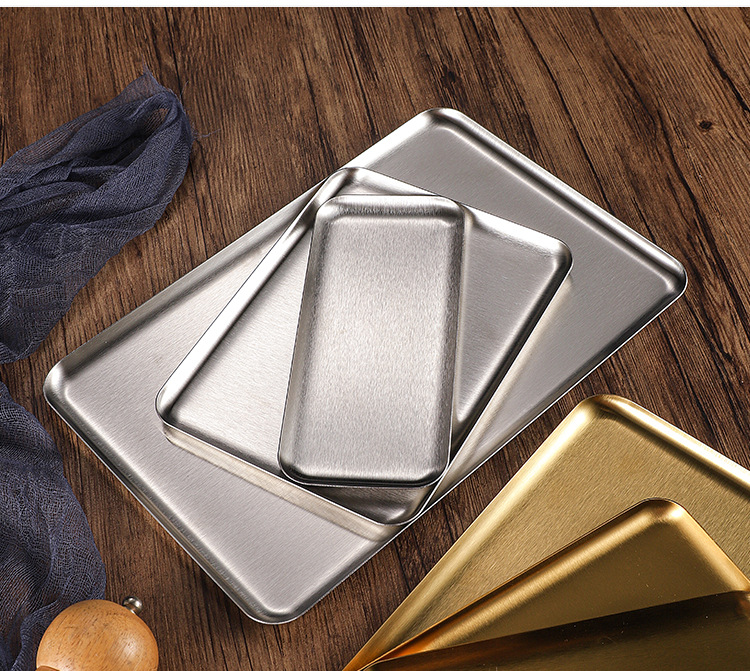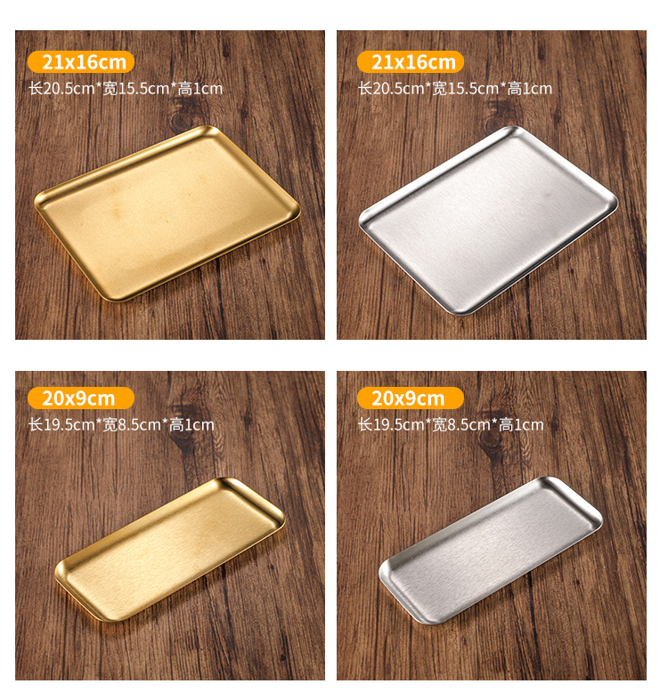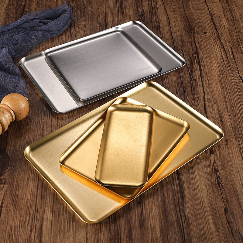한국식 스테인레스 스틸 직사각형 카페 트레이 딤섬 케이크 플레이트 상업용 황금 바베큐 플레이트 플랫 플레이트