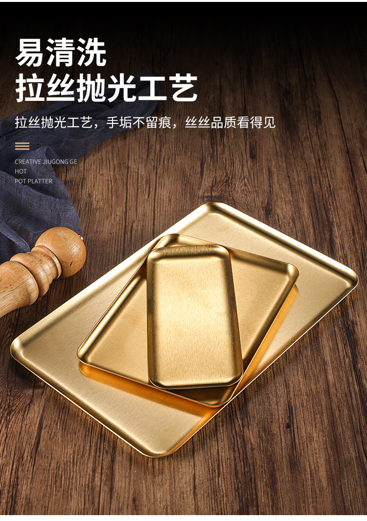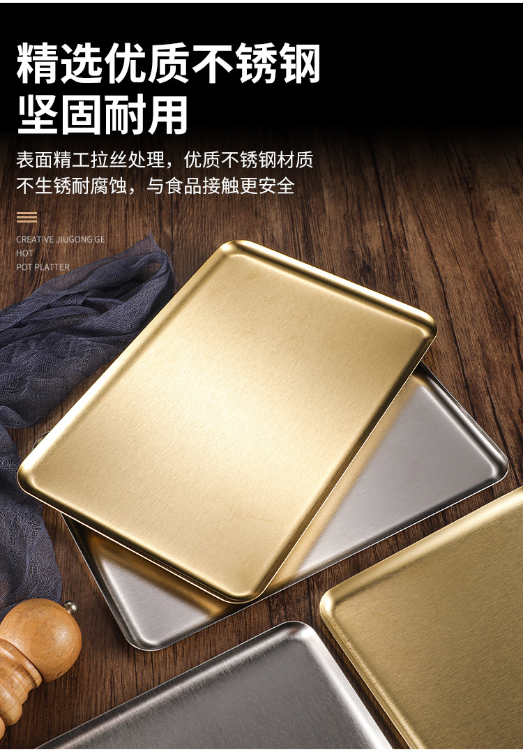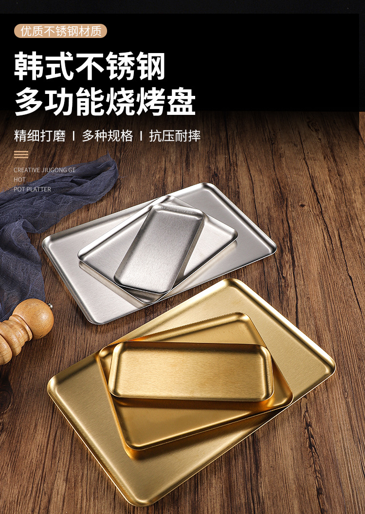 한국식 스테인레스 스틸 직사각형 카페 트레이 딤섬 케이크 플레이트 상업용 황금 바베큐 플레이트 플랫 플레이트스토어 가기