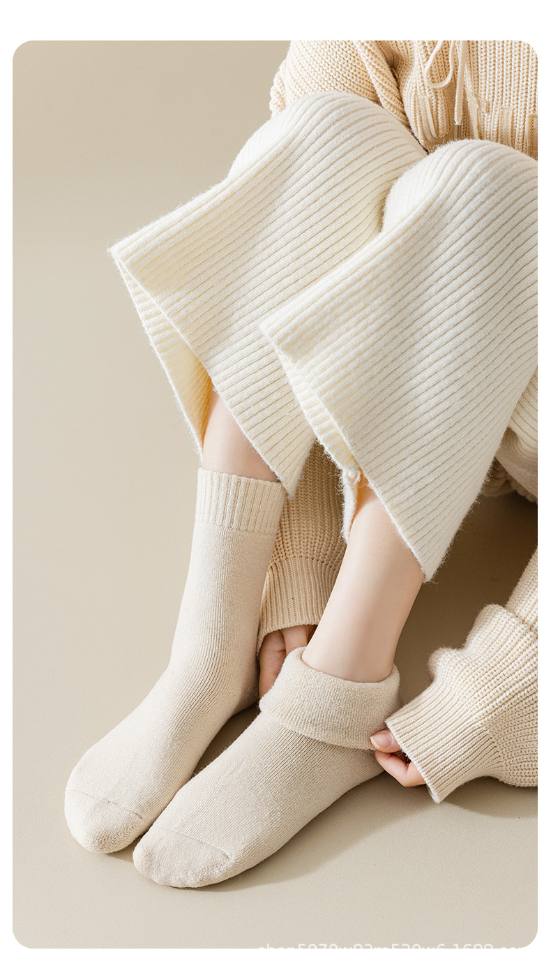 70% 양모 양말 여성의 가을과 겨울은 기모 따뜻한 중간 종아리 길이 양말 겨울 스타킹 수건 바닥 테리 두꺼운 양말스토어 가기