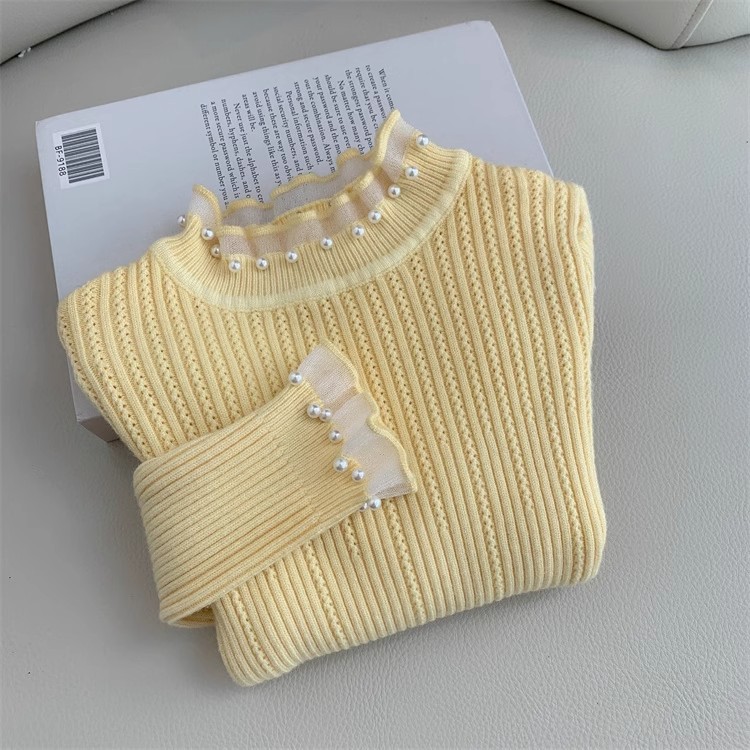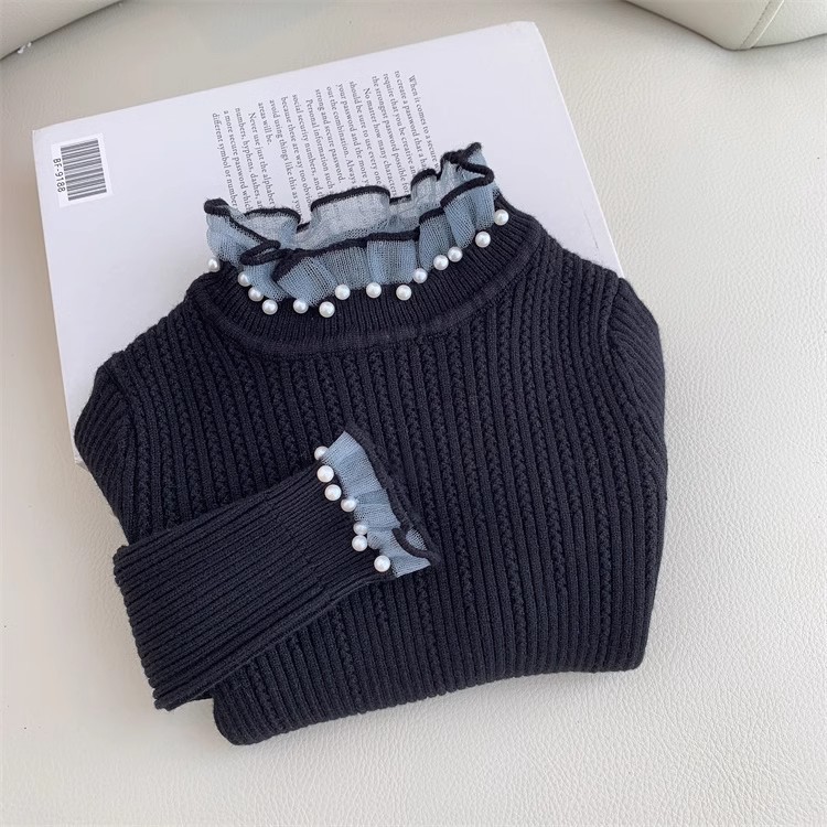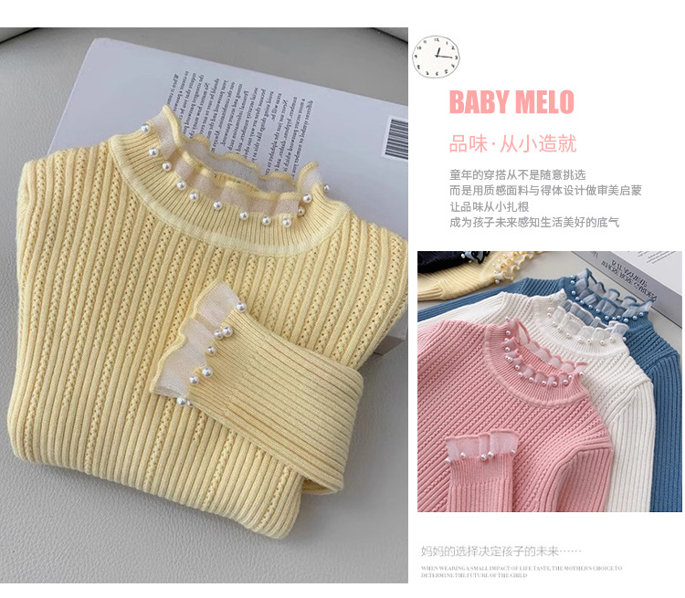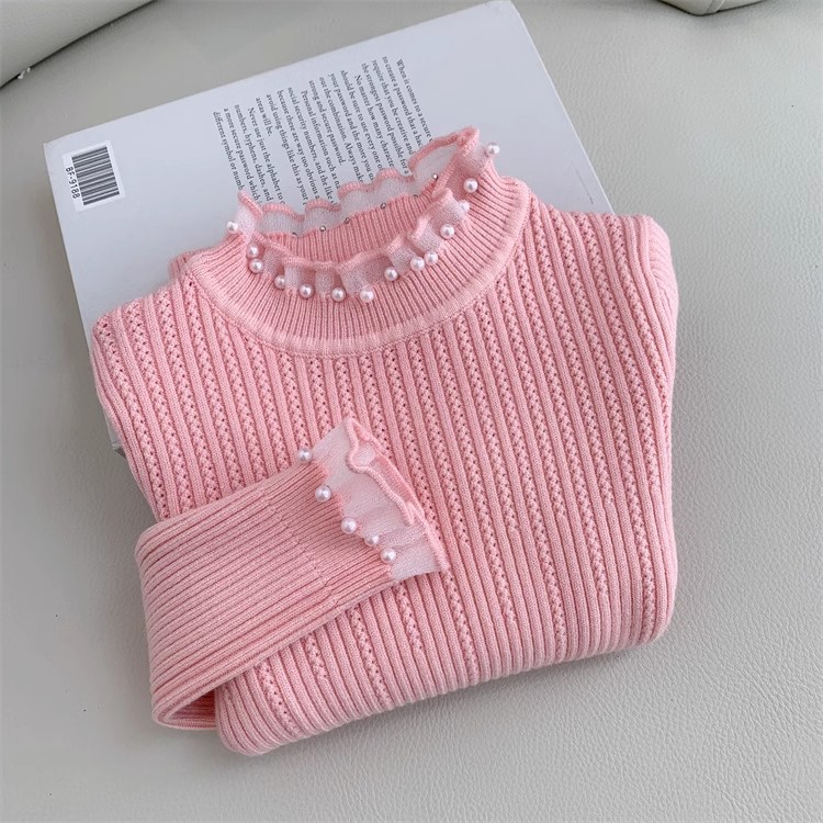 여아 가을 겨울 2025 신상 아동 레이스 니트 이너웨어 베이비 하프 터틀넥 스웨터 스타일리시 상의
