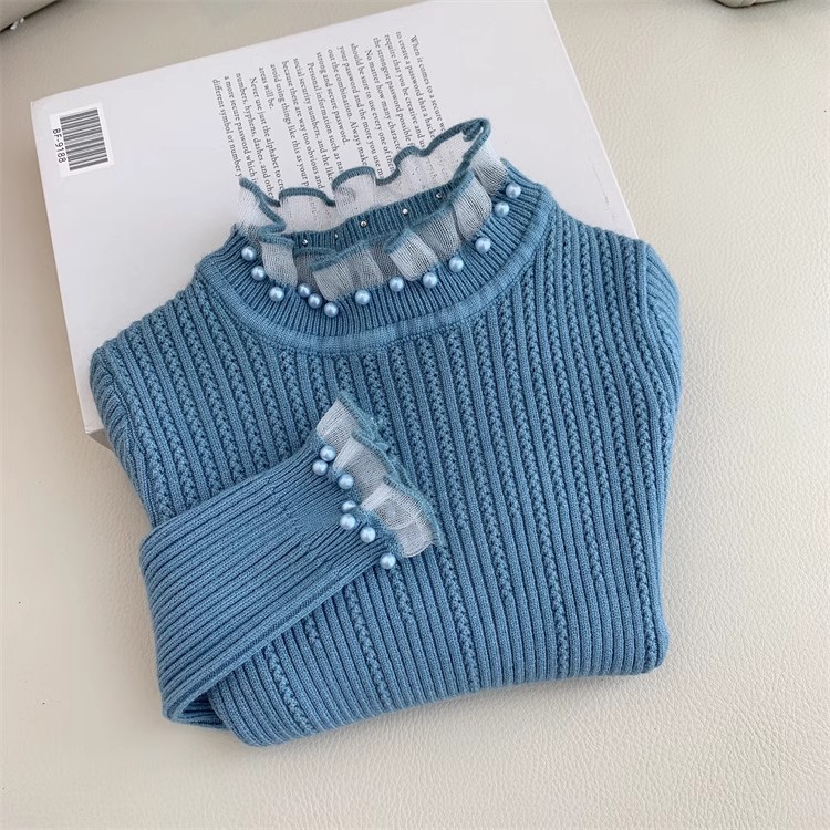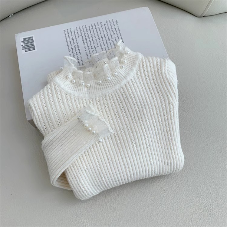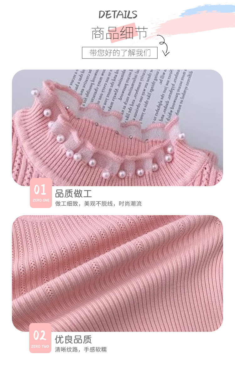 여아 가을 겨울 2025 신상 아동 레이스 니트 이너웨어 베이비 하프 터틀넥 스웨터 스타일리시 상의스토어 가기