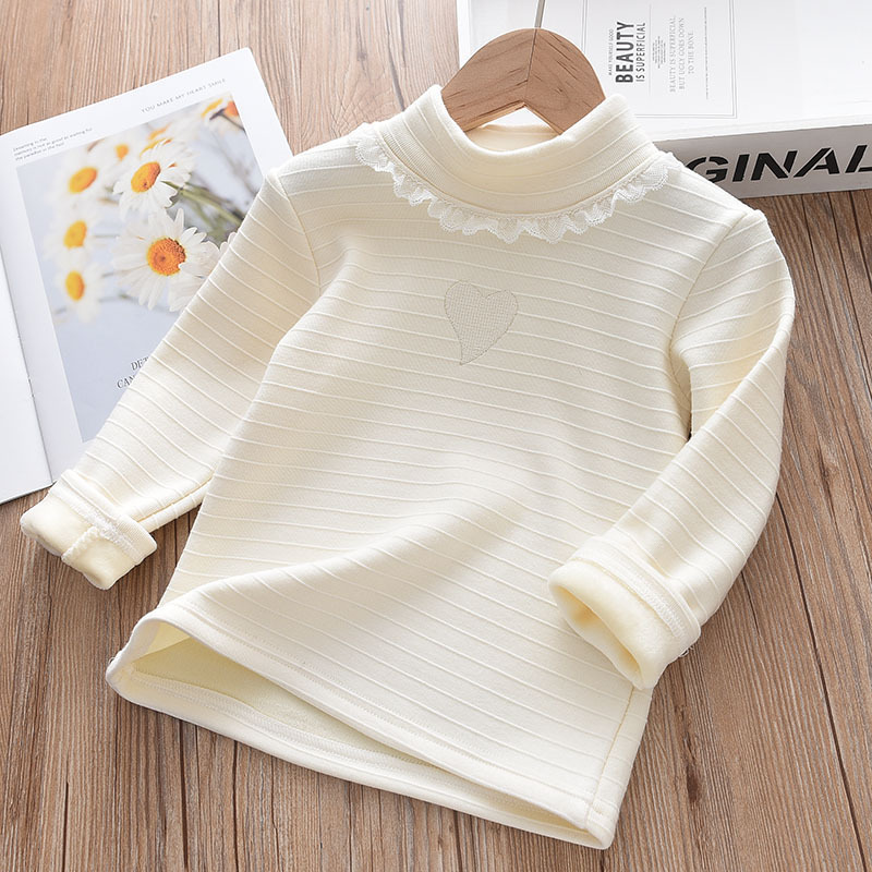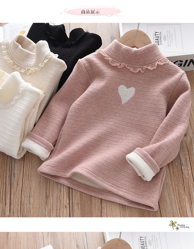 여자 기모 바닥 셔츠 겨울 새로운 어린이 원피스 벨벳 긴팔 티셔츠 서양식 아기 두꺼운 따뜻한 탑스토어 가기