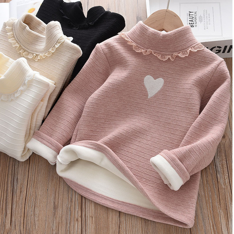여자 기모 바닥 셔츠 겨울 새로운 어린이 원피스 벨벳 긴팔 티셔츠 서양식 아기 두꺼운 따뜻한 탑