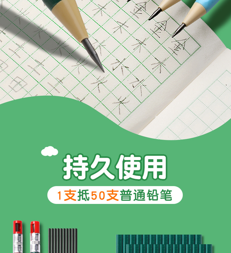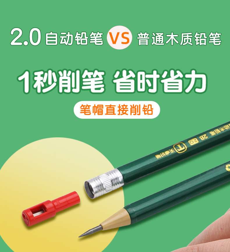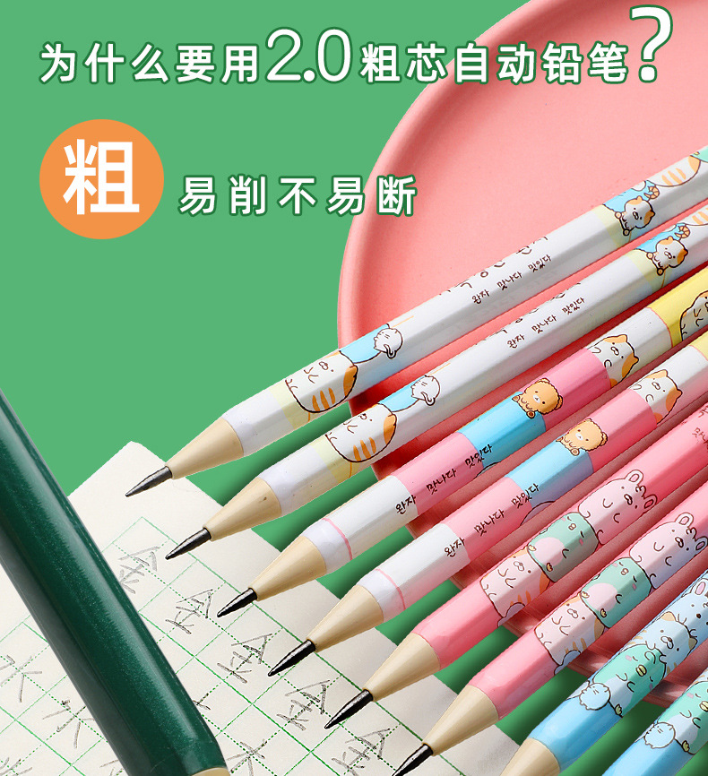 정품 Tianzhuo 2.0mm 자동 연필 초등학교 학생 2B 두꺼운 코어 푸시 연필 리드 어린이 연필 끊기 쉽지 않음