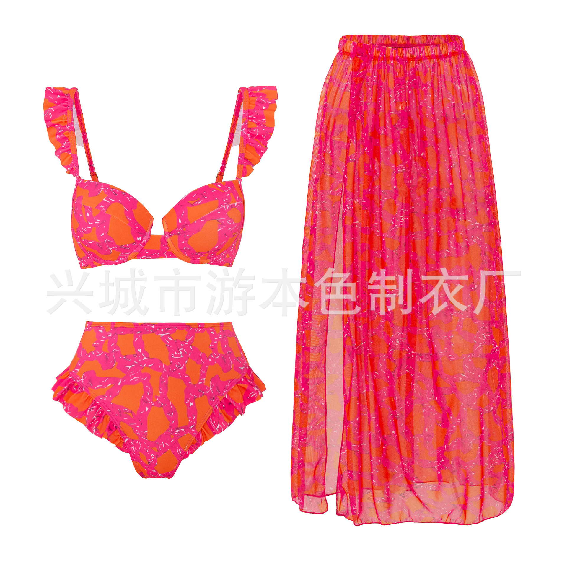 인쇄 된 새로운 유럽과 미국의 국경 원피스 3 피스 수영복 보수적 인 배꼽 커버 슬리밍 인기 수영복 아마존 섹시
