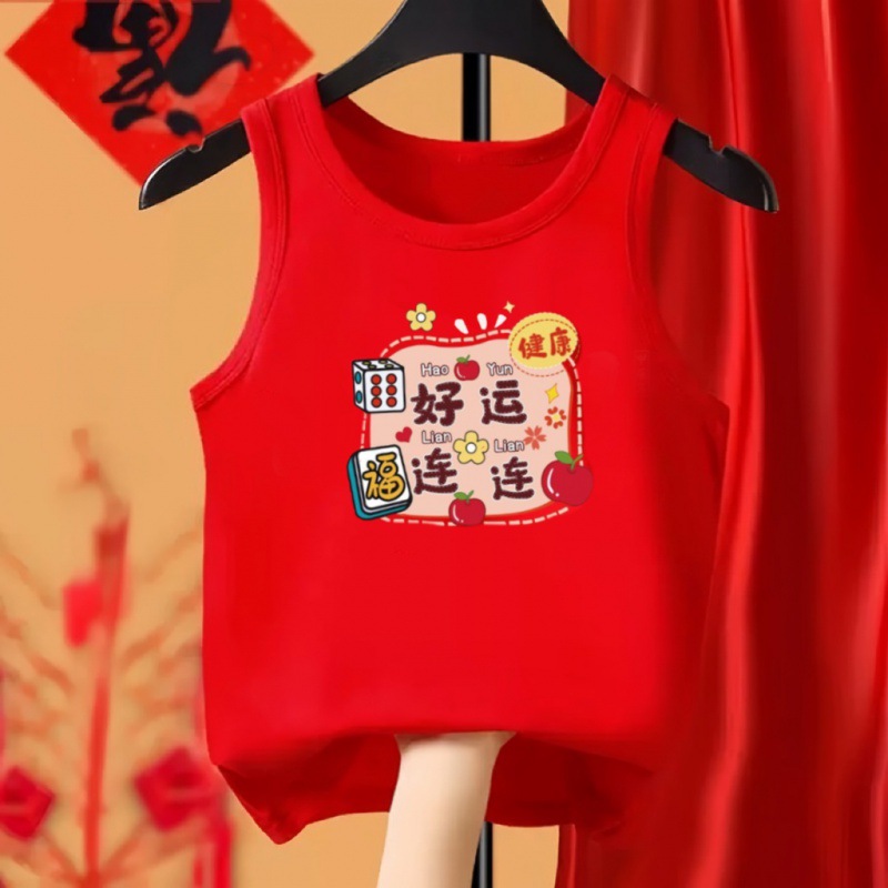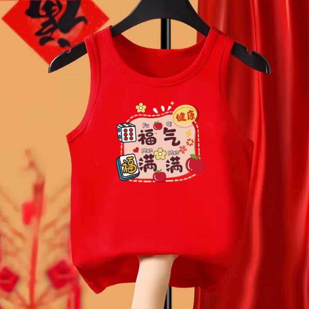 드래곤 년 어린이 코튼 레드 조끼 어린이 민소매 국가 패션 아기 축제 새해 인사말 옷 소년 소녀 바닥 셔츠
