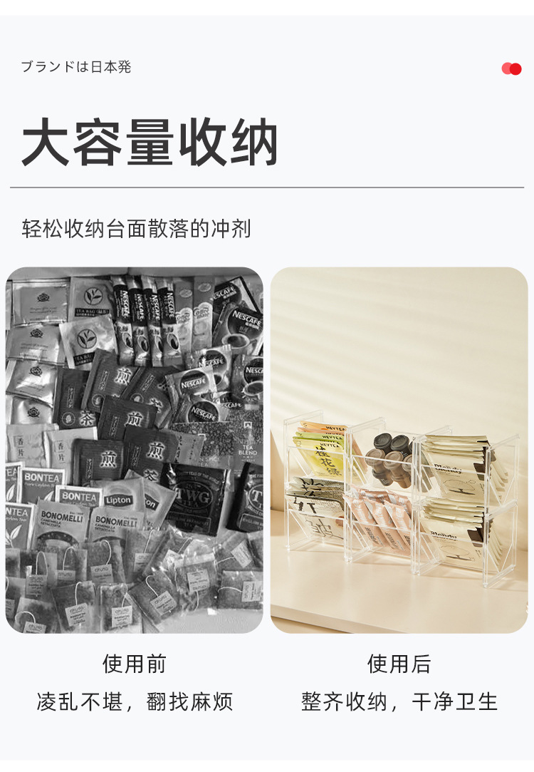 • 商品名称:日式可组合斜插式茶包收纳盒 胶囊咖啡挂耳咖啡分类整理盒