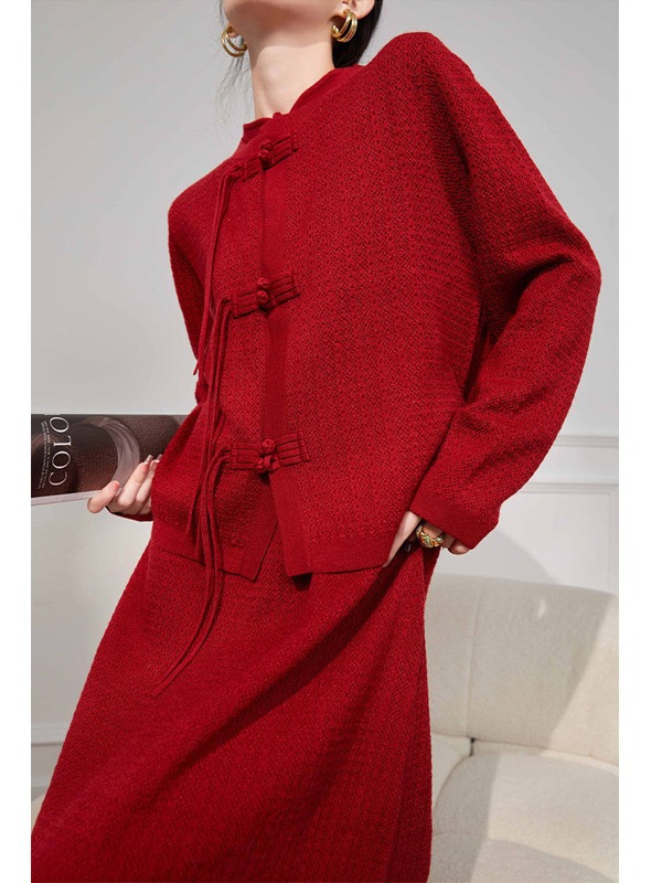 새로운 중국 스타일 스탠드 칼라 버클 세트 여성 의류 2023 가을과 겨울 새로운 국가 스타일 니트 카디건 조끼 스커트 패션스토어 가기
