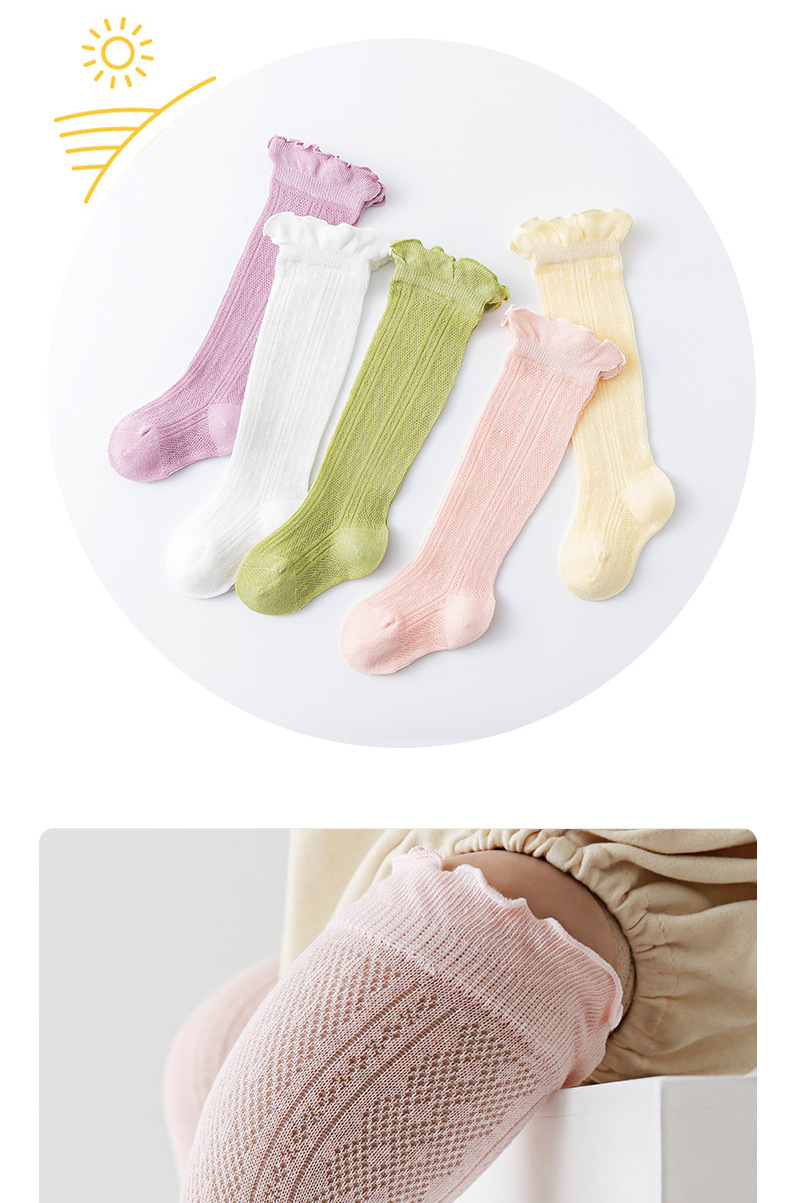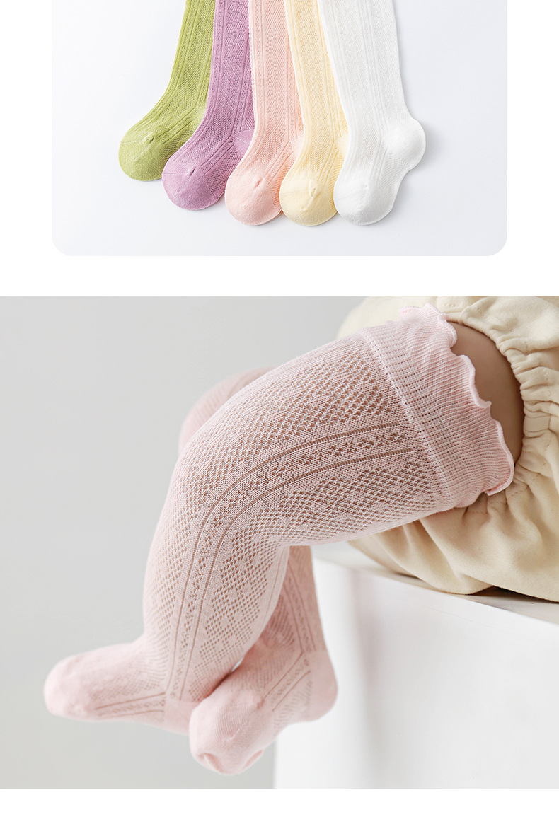 아기 양말 여름 얇은 긴면 양말 신생아 남성과 여성 아기 통기성 메쉬 단단한 다리 모기 방지 오버 더 무릎 양말