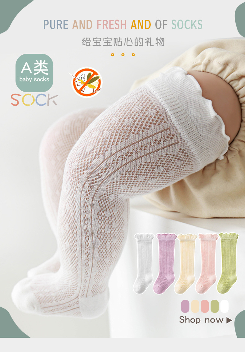 아기 양말 여름 얇은 긴면 양말 신생아 남성과 여성 아기 통기성 메쉬 단단한 다리 모기 방지 오버 더 무릎 양말스토어 가기