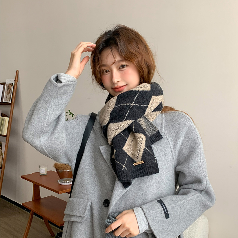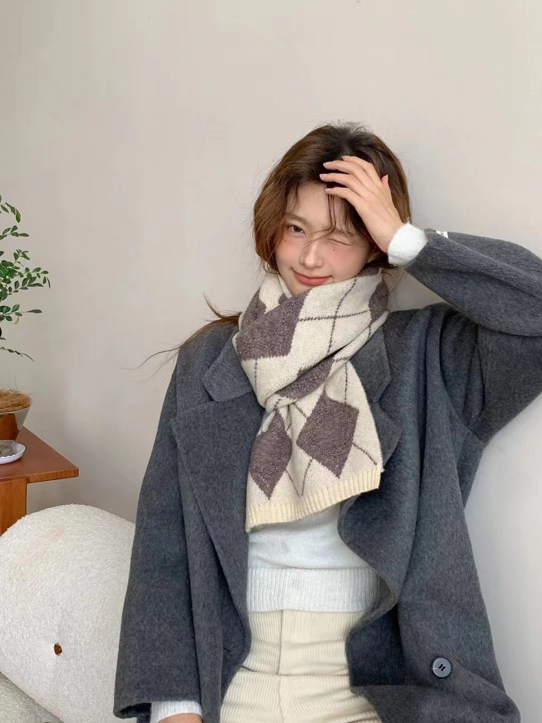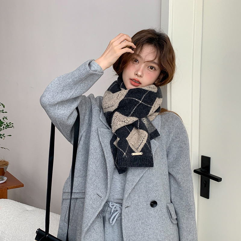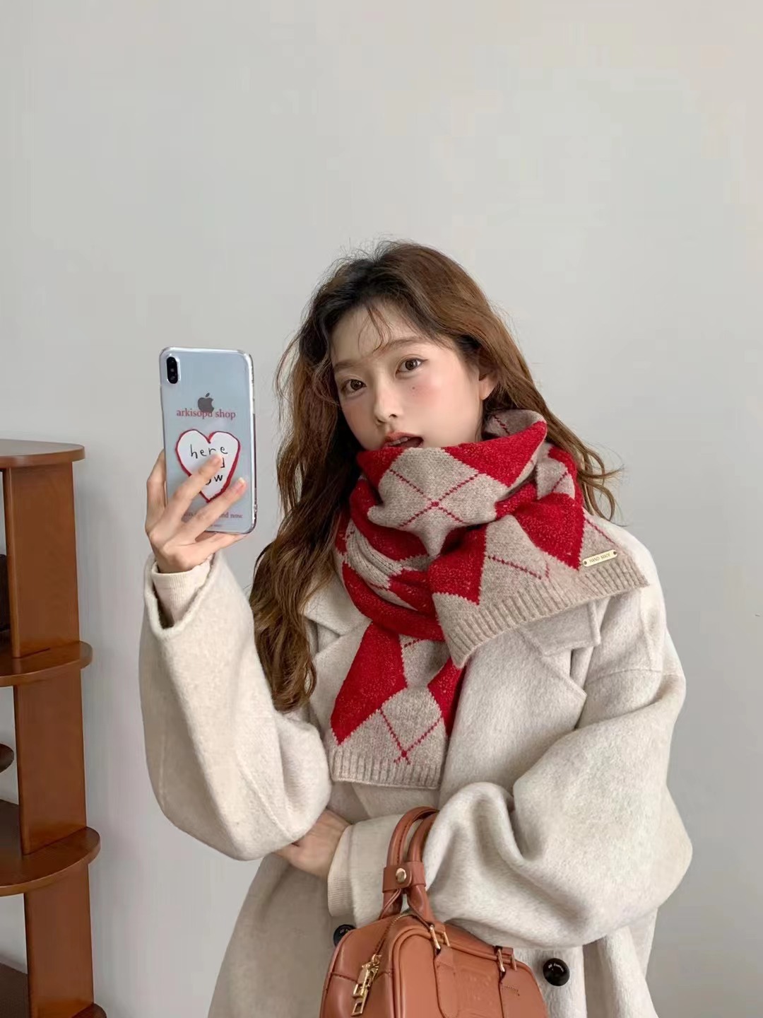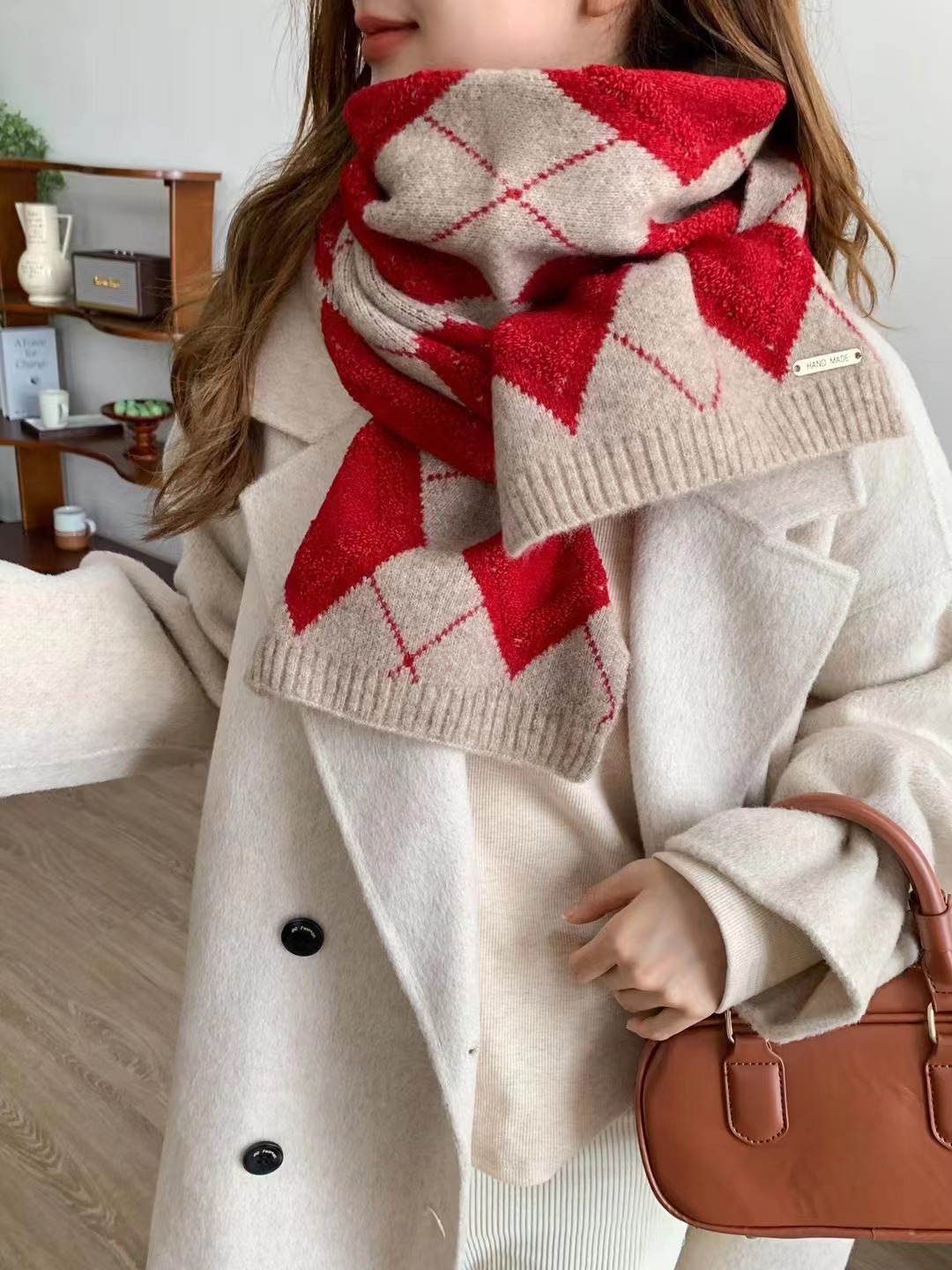 Maillard 크리스마스 겨울 따뜻한 스카프 남성과 여성 커플 다이아몬드 격자 무늬 니트 울 따뜻한 두꺼운 스카프스토어 가기