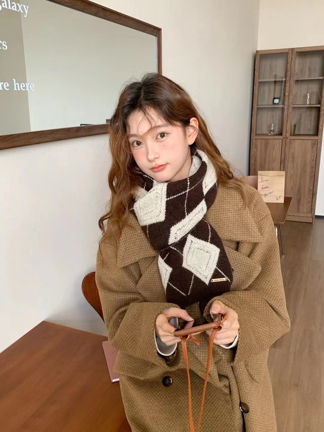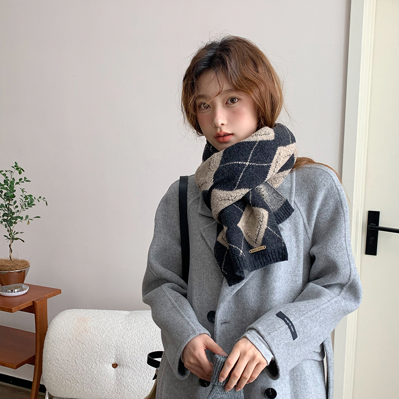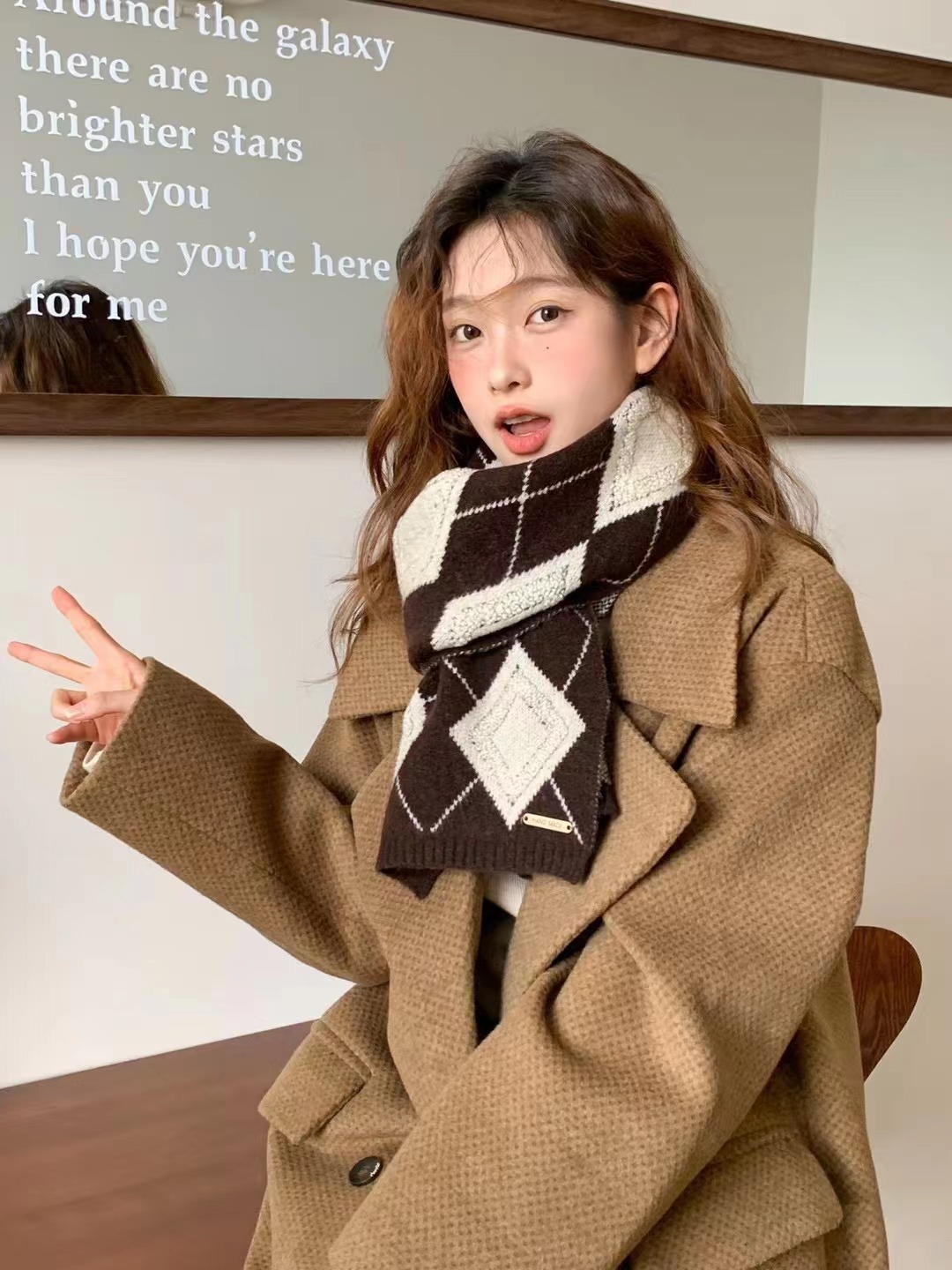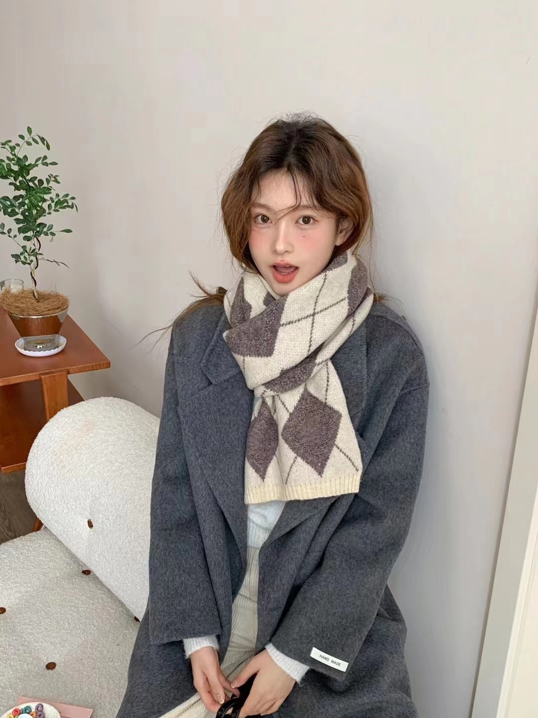Maillard 크리스마스 겨울 따뜻한 스카프 남성과 여성 커플 다이아몬드 격자 무늬 니트 울 따뜻한 두꺼운 스카프스토어 가기