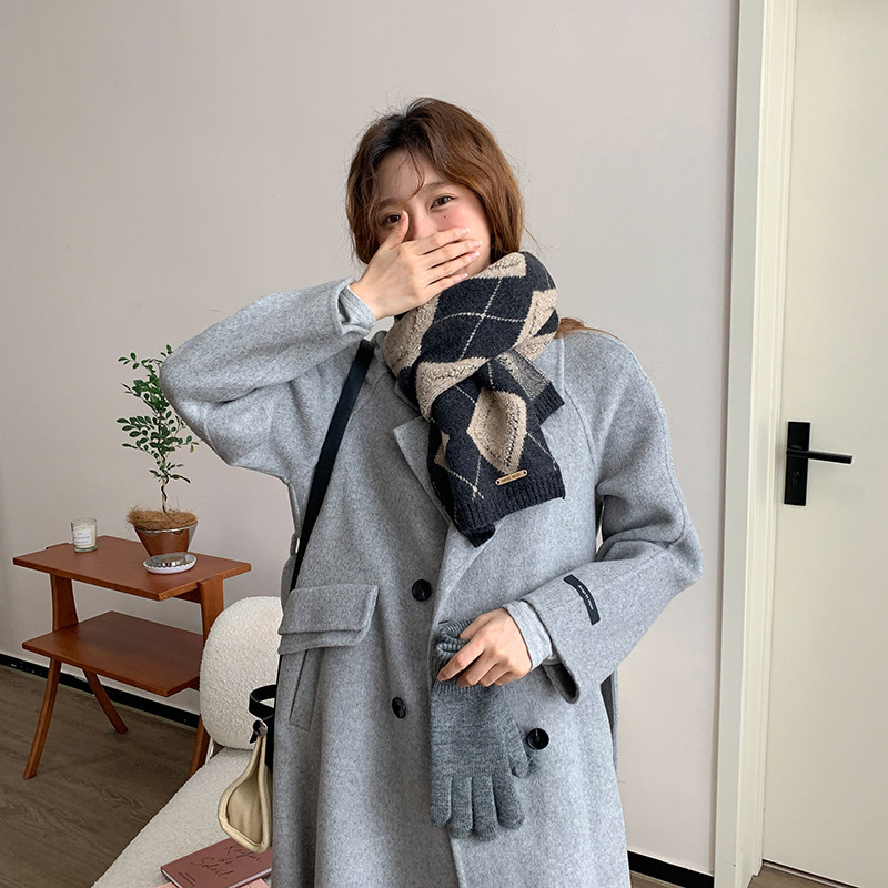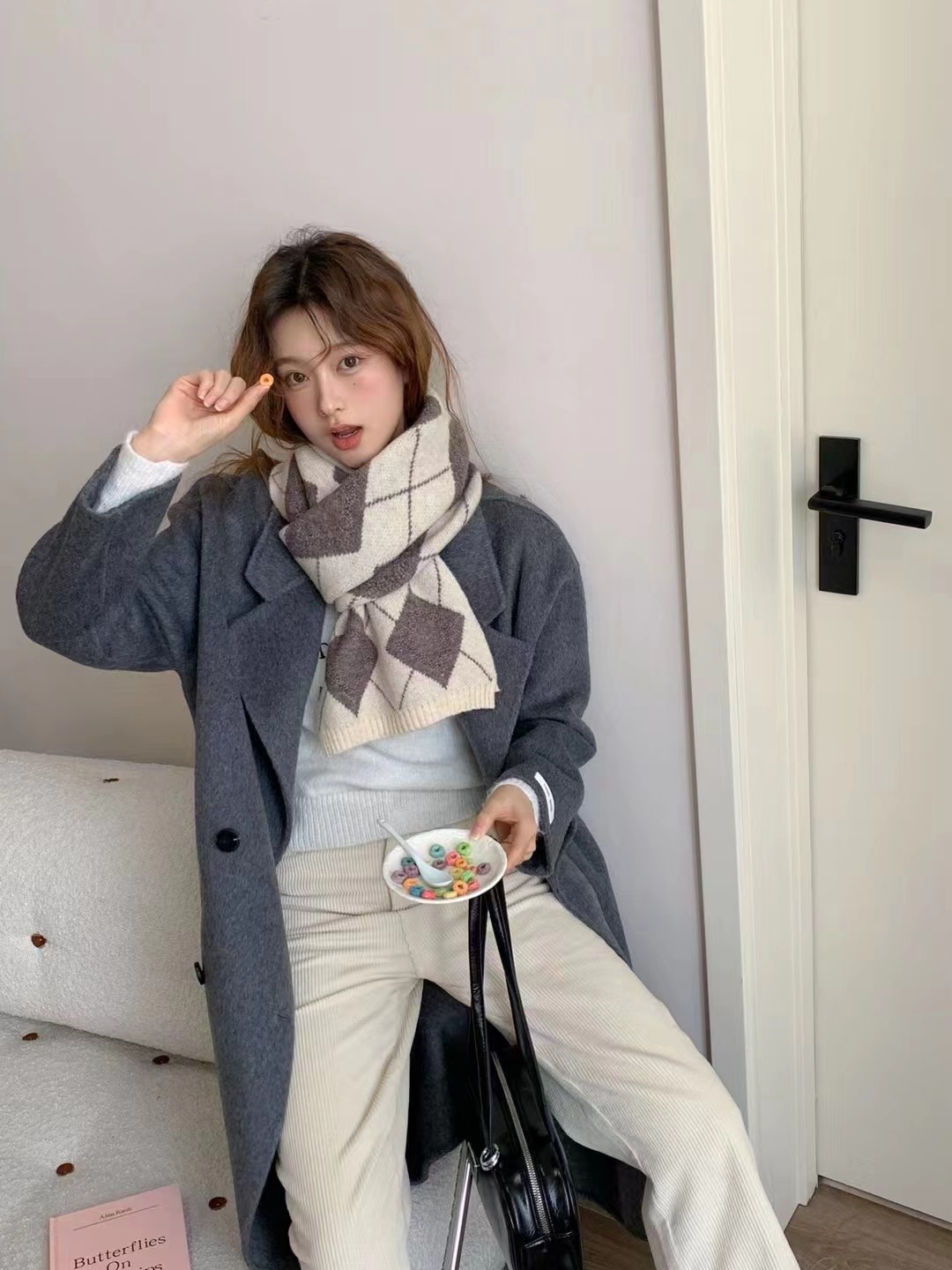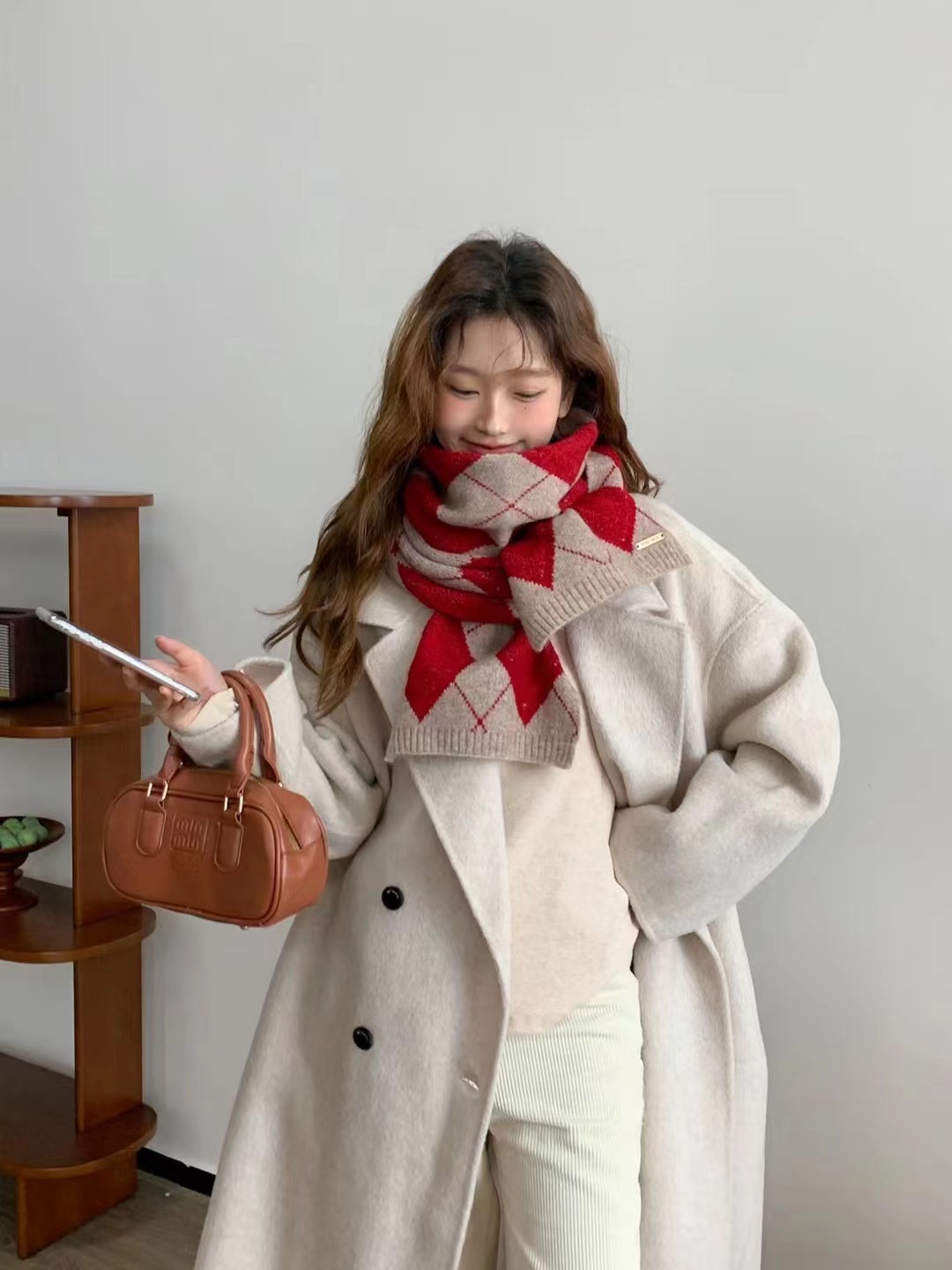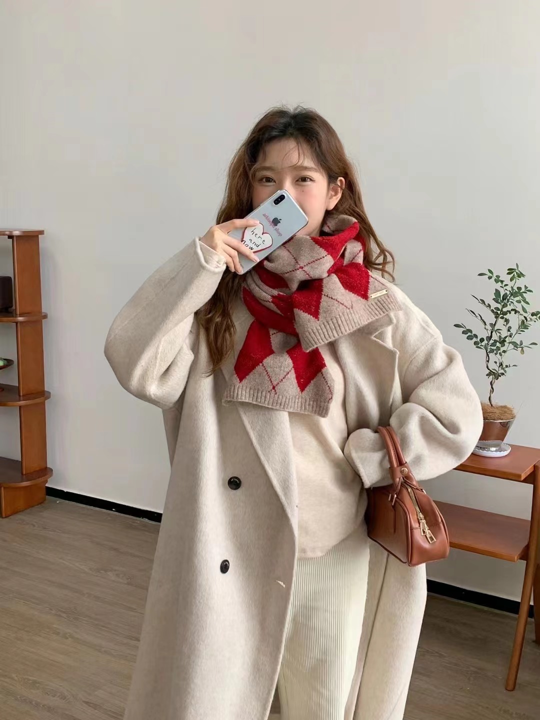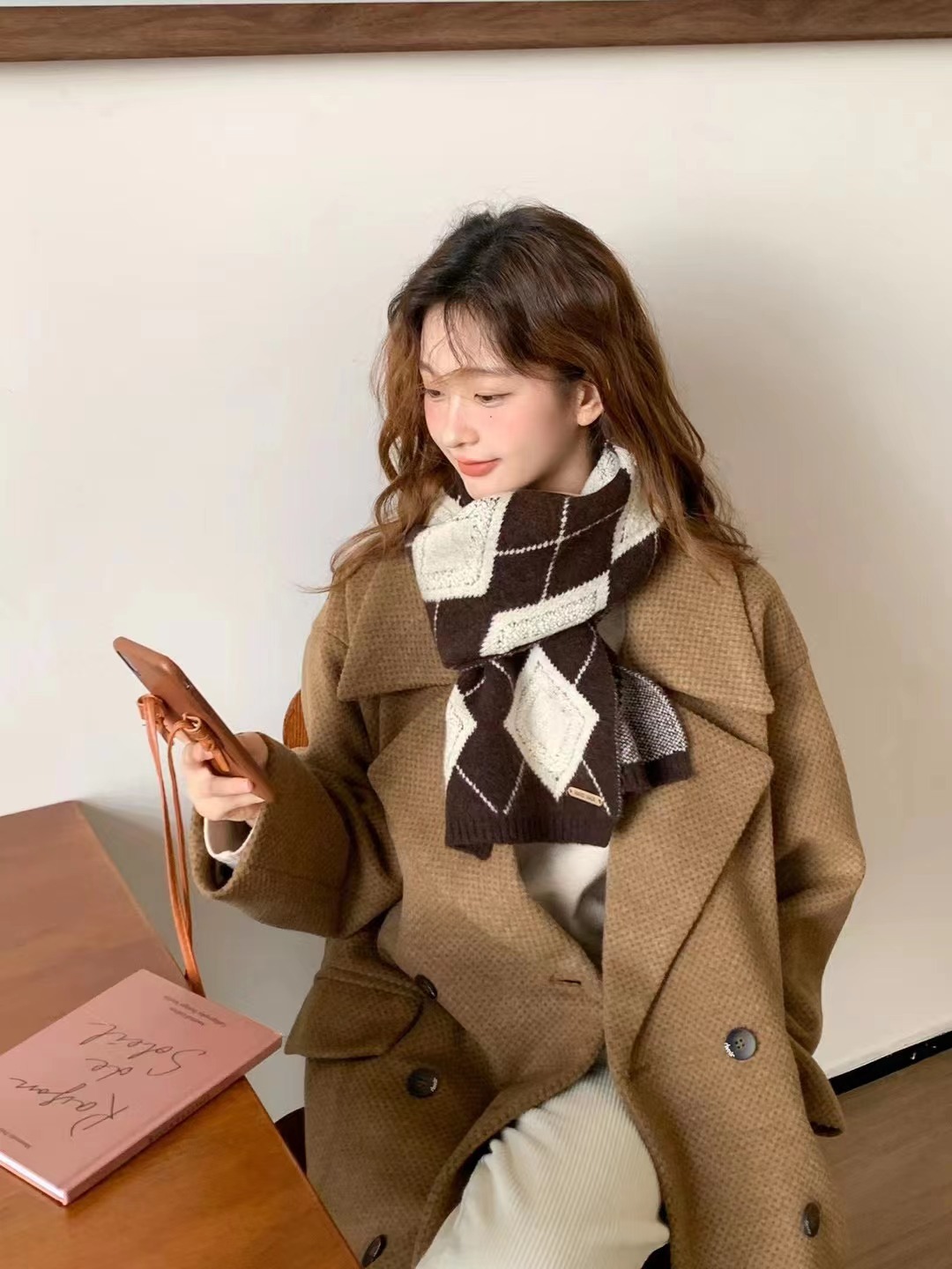 Maillard 크리스마스 겨울 따뜻한 스카프 남성과 여성 커플 다이아몬드 격자 무늬 니트 울 따뜻한 두꺼운 스카프스토어 가기