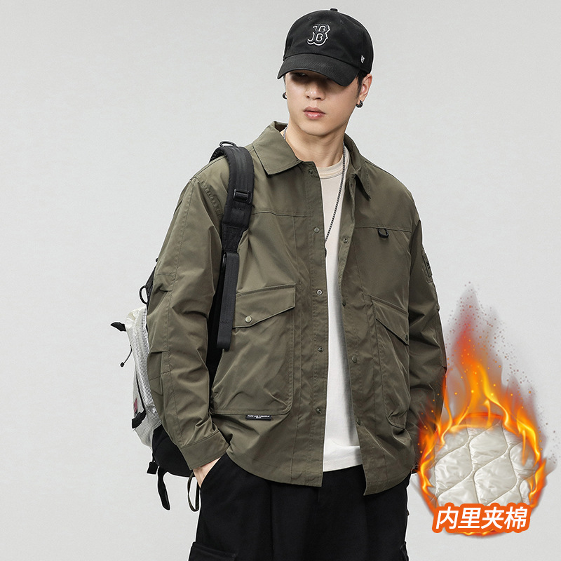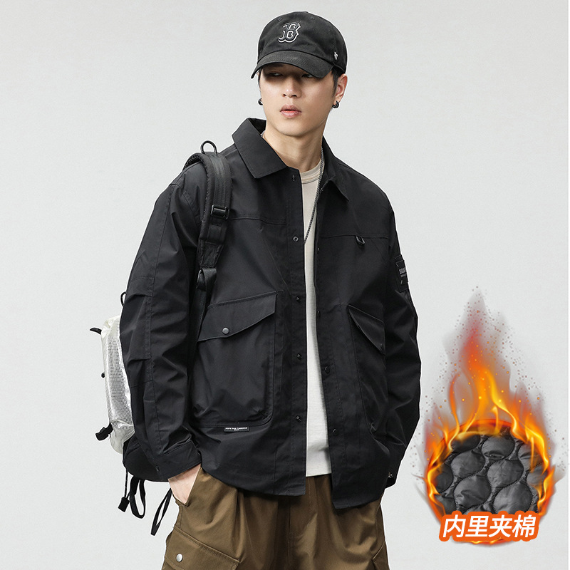 2024 새로운 트렌디 브랜드 재킷 남성용 미국 가을, 겨울 작업복 플러스 벨벳 야외 3방향 라펠 재킷