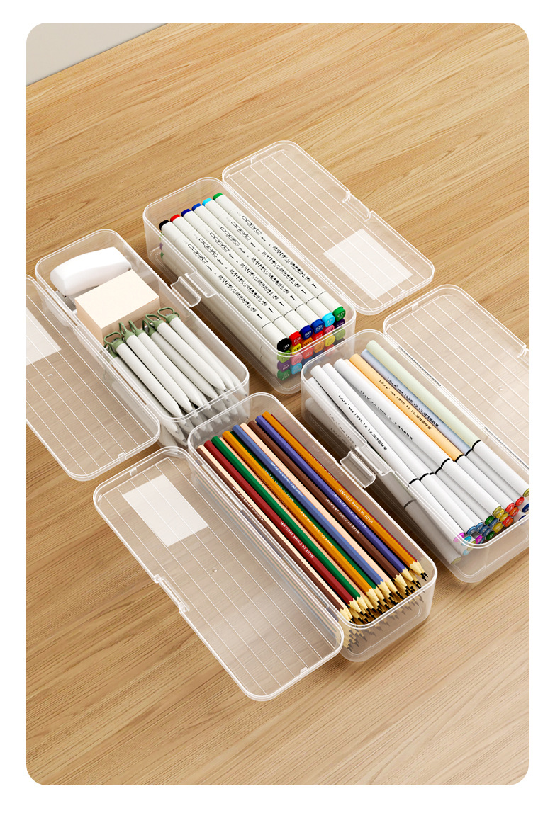 투명한 연필 케이스 어린이 플라스틱 크레용 연필 컬러 펜 저장 상자 대용량 연필 케이스 데스크탑 학생 연필 케이스