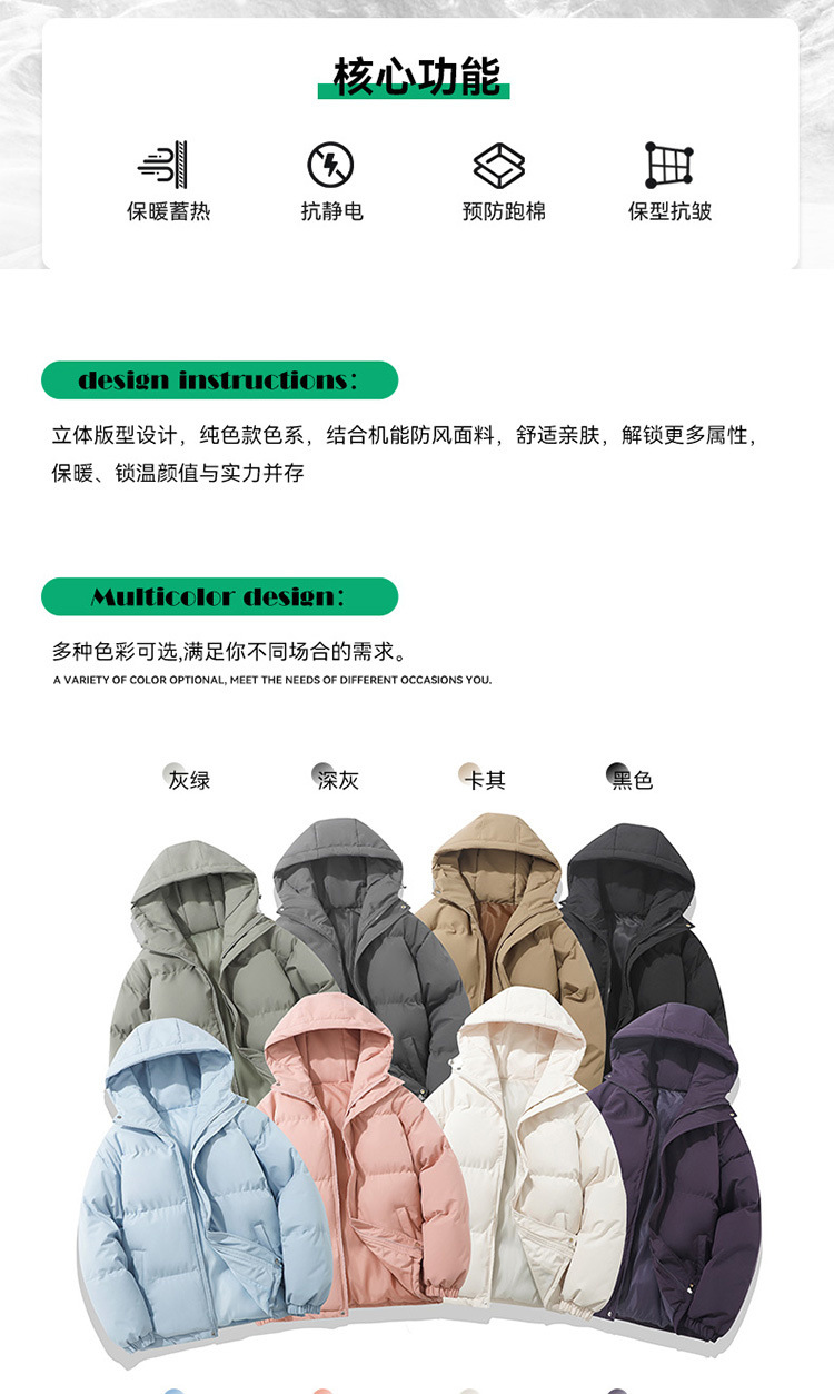 겨울면 패딩 코트 남성 커플의 같은 후드 빵 코트 캐주얼 단색 두꺼운 따뜻한 패션 브랜드 느슨한 패션면 패딩 코트스토어 가기