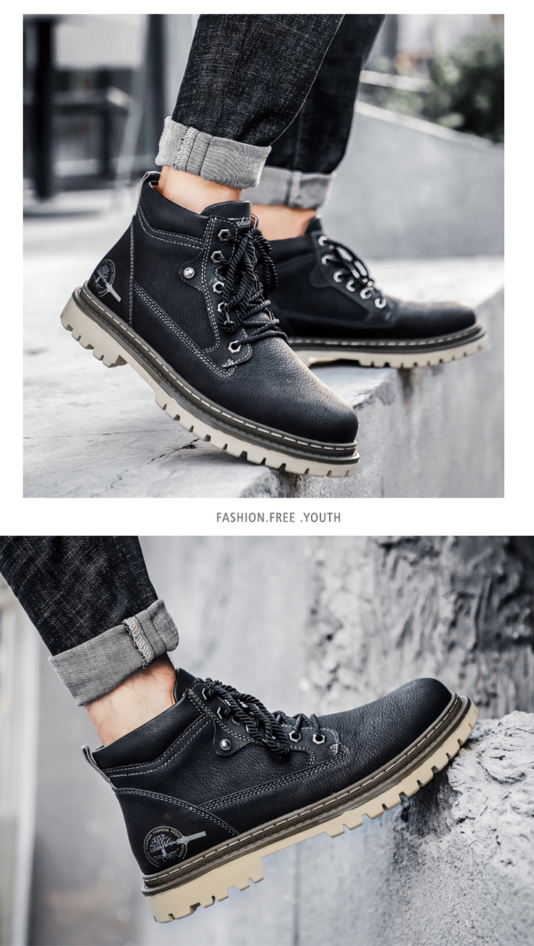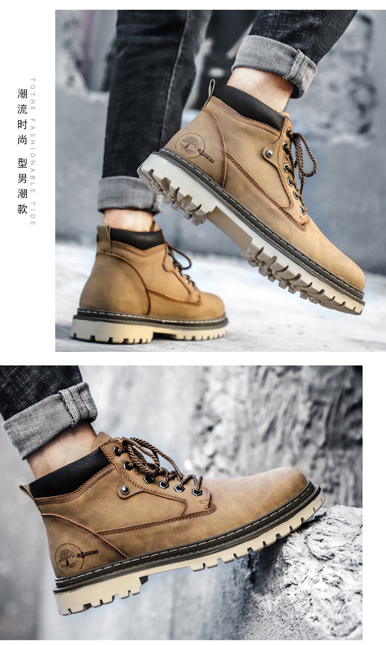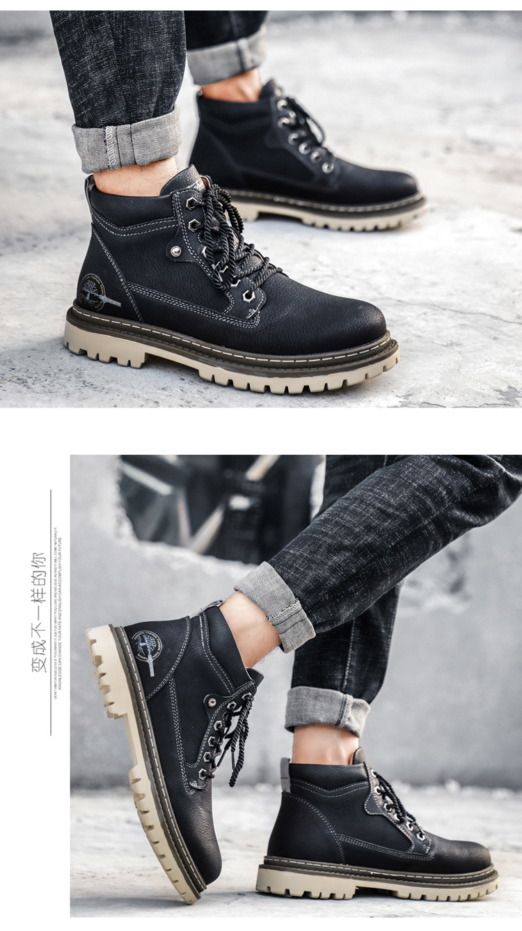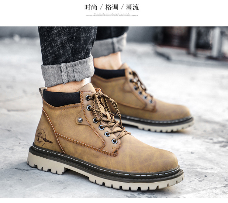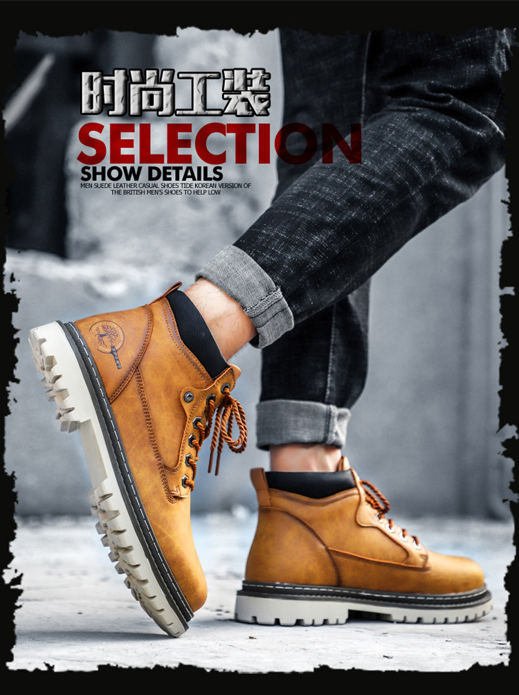 남성면 패딩 신발 야외 작업 신발 하이탑 신발 싱글 레이어 신발 크로스 보더 플러스 사이즈 남성용 신발 손으로 꿰매는 신발스토어 가기