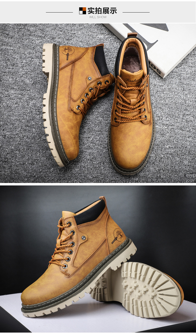남성면 패딩 신발 야외 작업 신발 하이탑 신발 싱글 레이어 신발 크로스 보더 플러스 사이즈 남성용 신발 손으로 꿰매는 신발