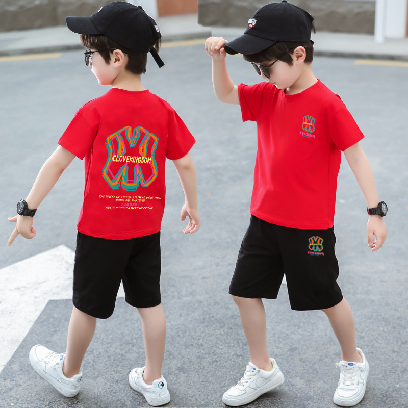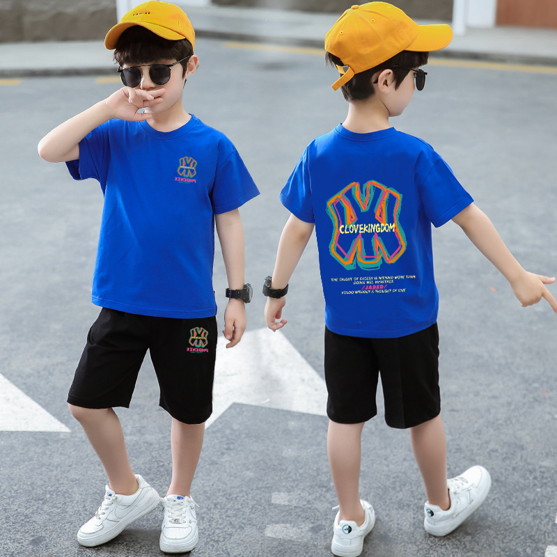 여름 새로운 아동복 어린이 반팔 세트 도매 소년 소녀 아기 티셔츠 반바지 투피스면스토어 가기