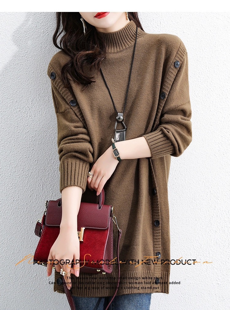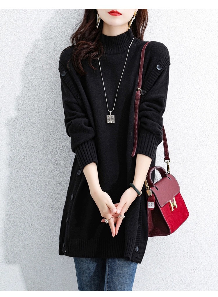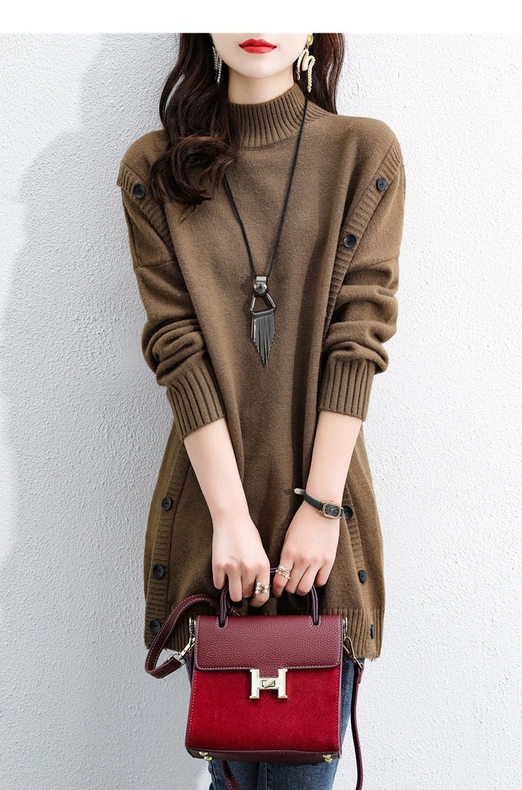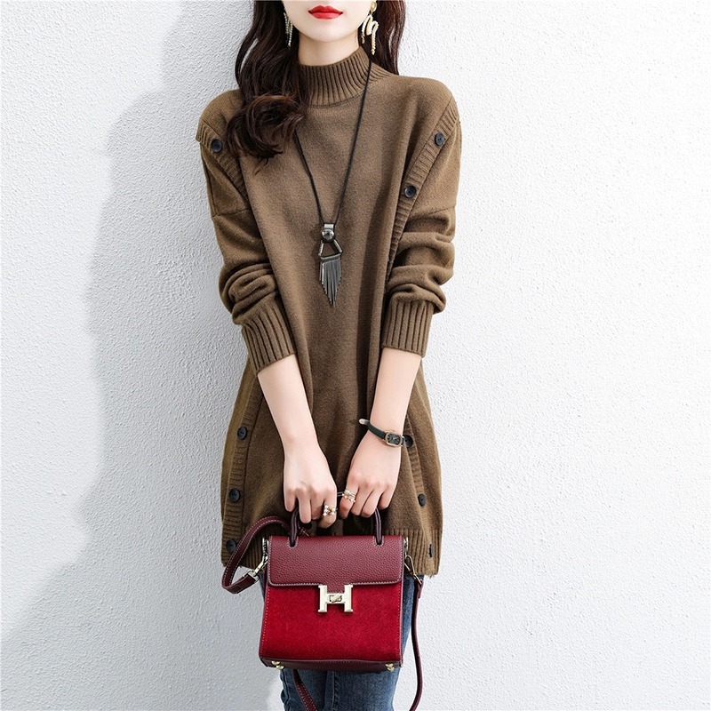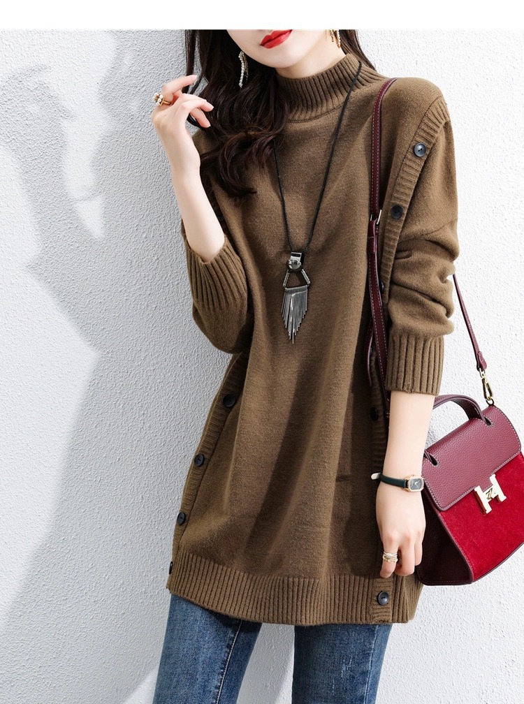 2023 겨울 새로운 우아한 나이 감소 중간 길이 스웨터 슬리밍 배꼽 커버 반 터틀넥 긴 소매 스웨터 여성용스토어 가기