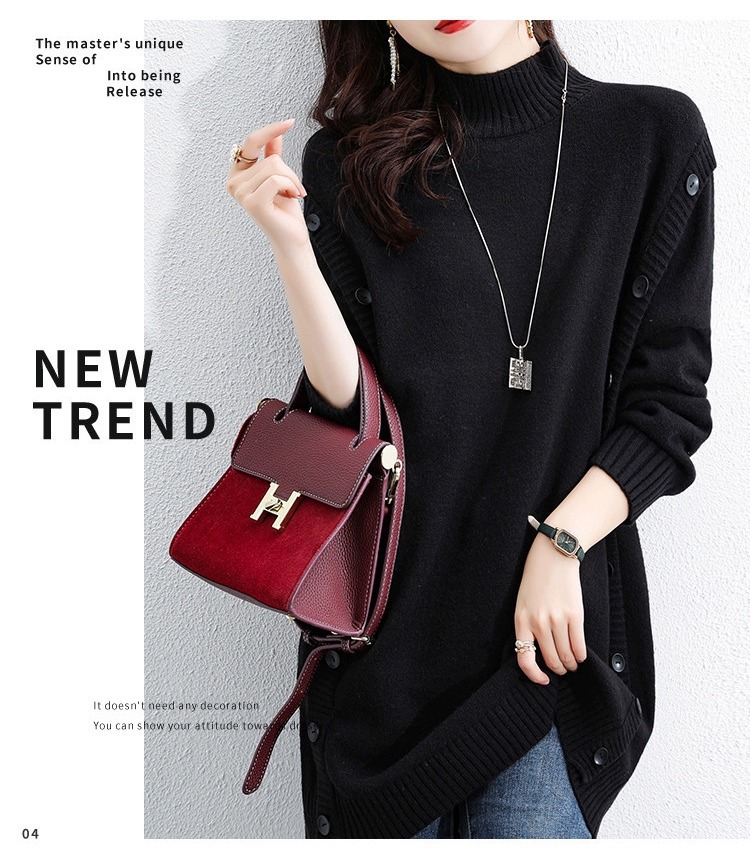 2023 겨울 새로운 우아한 나이 감소 중간 길이 스웨터 슬리밍 배꼽 커버 반 터틀넥 긴 소매 스웨터 여성용