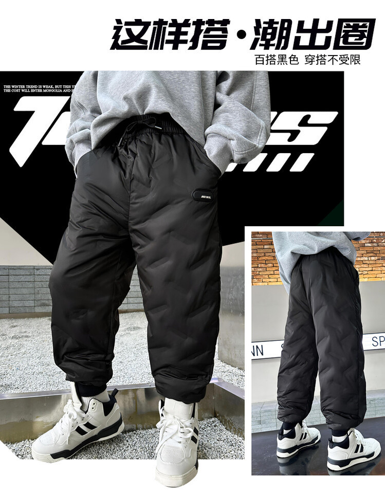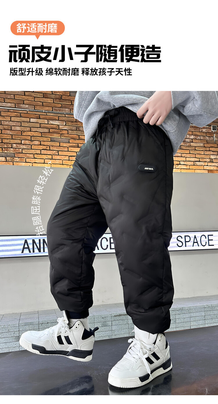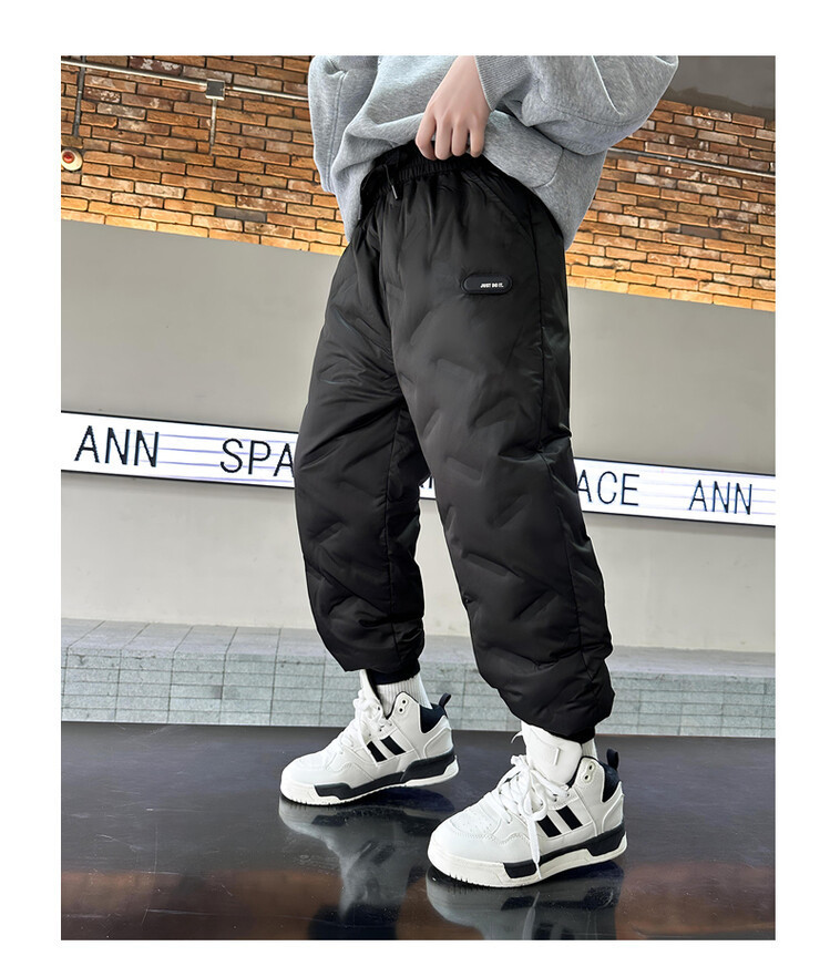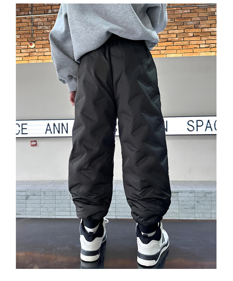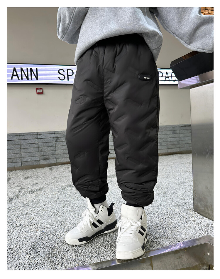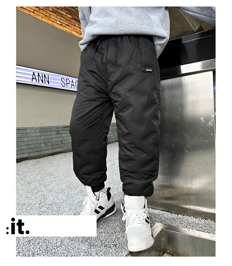 소년 다운 바지 겨울은 두꺼운 어린이 슬림 핏 바지 2023 새로운 겨울 중대형 어린이 서양식 따뜻한 면 바지