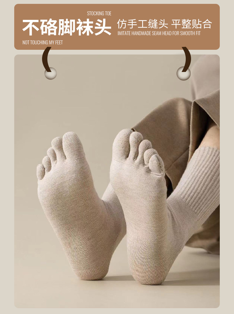 남성 가을과 겨울 울 따뜻한 다섯 손가락 양말 땀 흡수성 뼈없는 발가락 양말 항균 탈취제 마찰 두꺼운 스타킹
