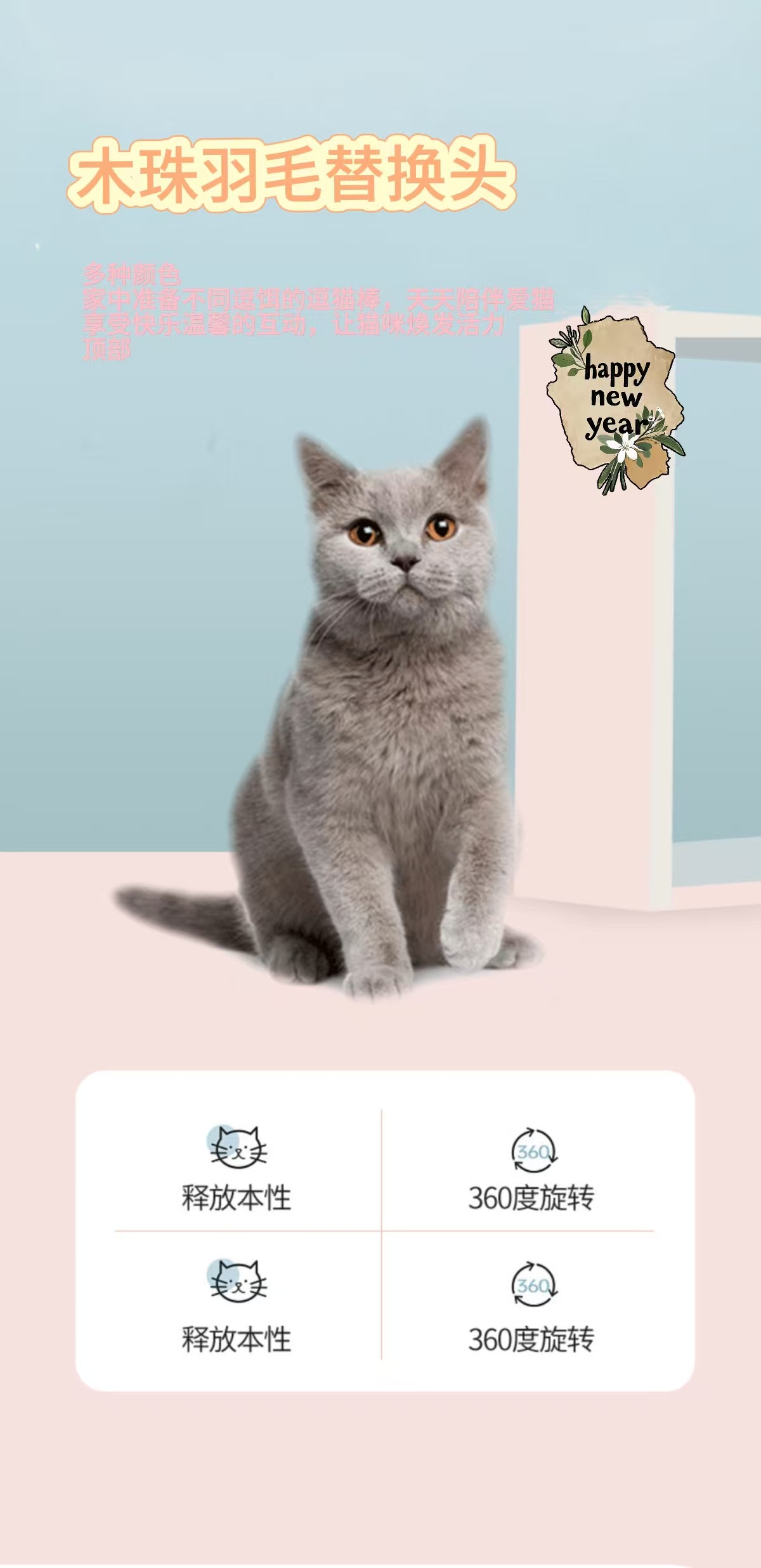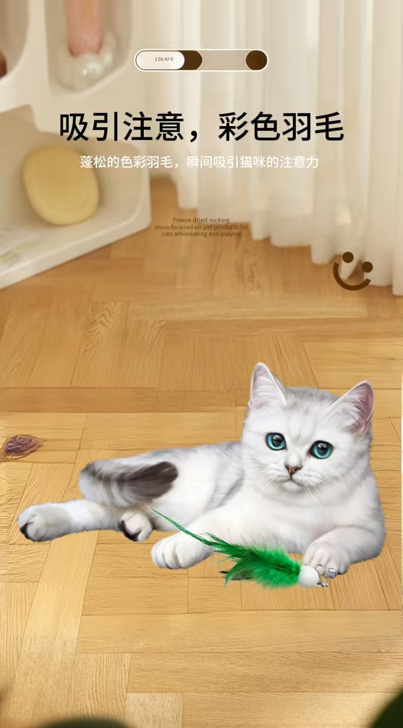 창조적 인 깃털 버클 벨 고양이 스틱 교체 머리 그라디언트 깃털 고양이 대화 형 장난감 애완 동물 용품 도매스토어 가기