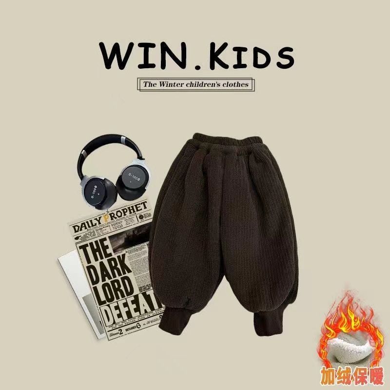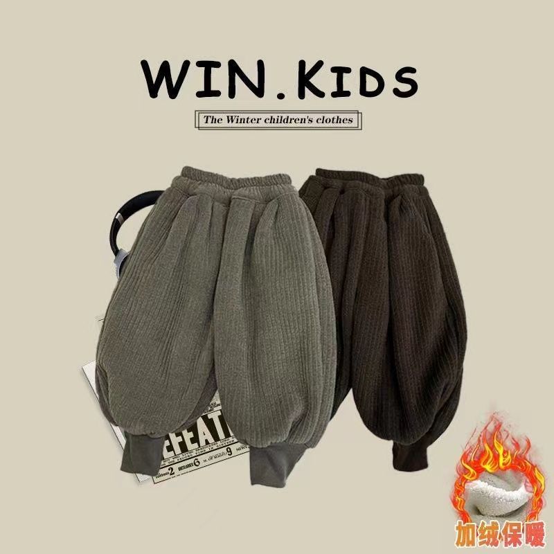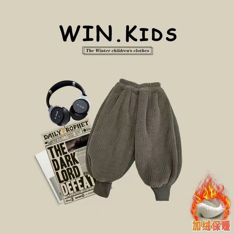 소년 소녀를위한 어린이 겨울 바지 한국 스타일 느슨한 기모 두꺼운 따뜻한 코듀로이 겨울 캐주얼 바지