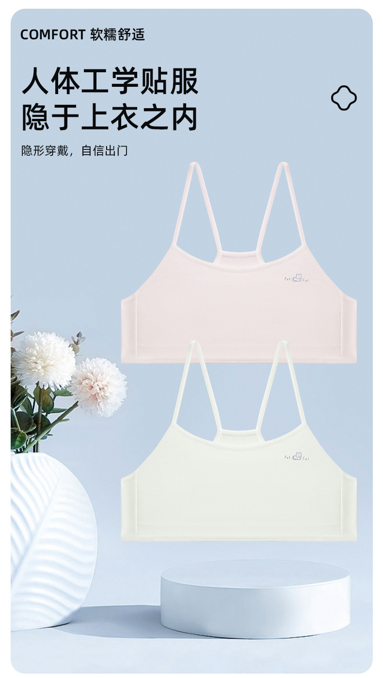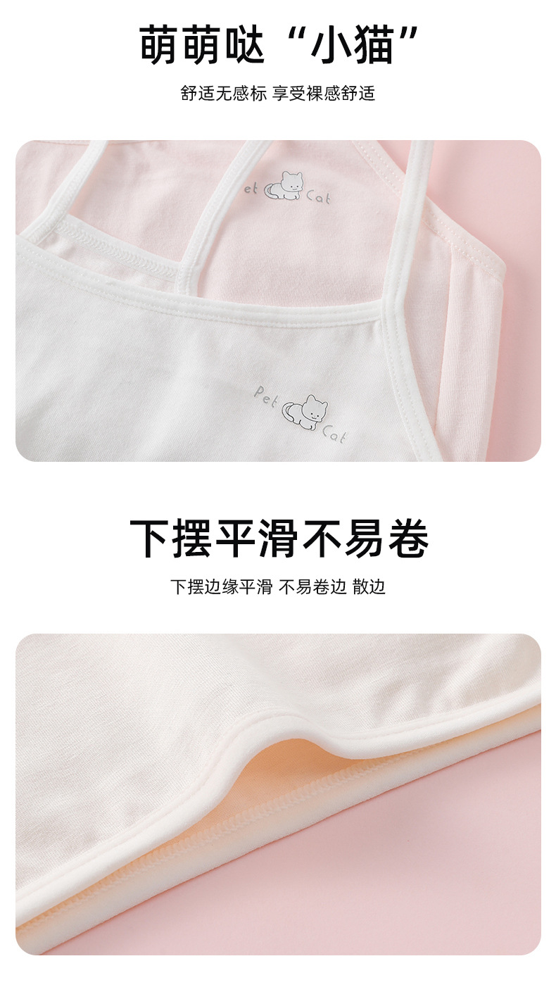 오메이펜 여아 발달 1단계 면 속옷 편안한 얇은 가늘게 짜인 민소매 노출방지 브라