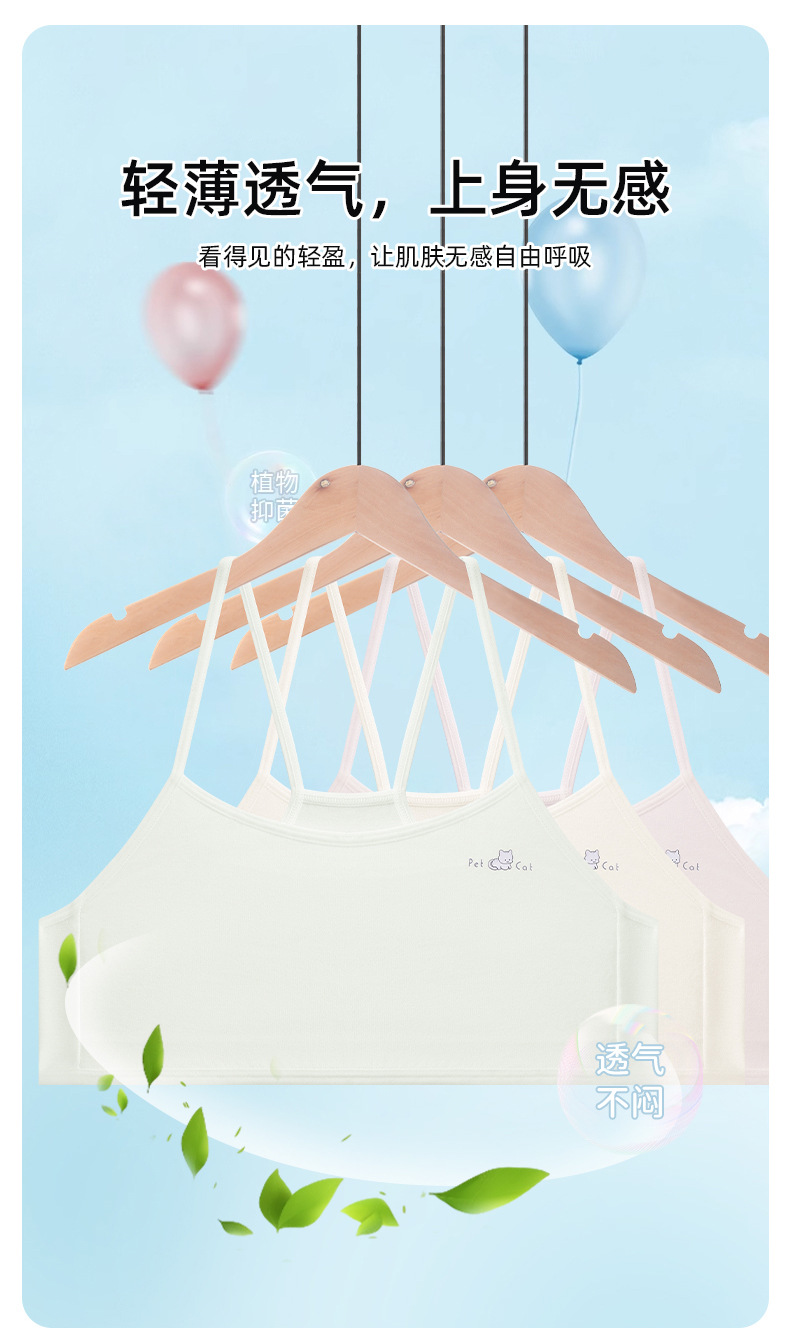 오메이펜 여아 발달 1단계 면 속옷 편안한 얇은 가늘게 짜인 민소매 노출방지 브라스토어 가기