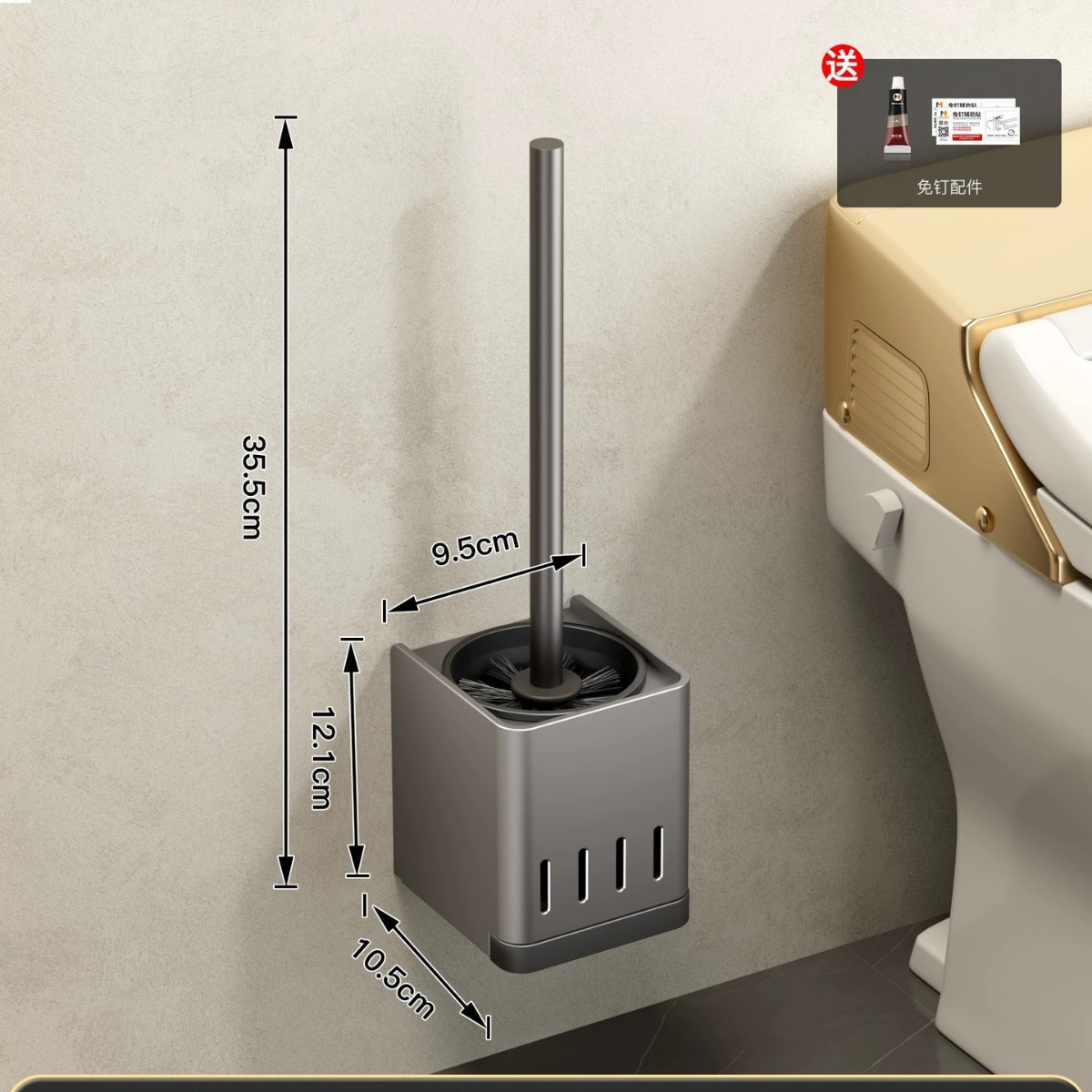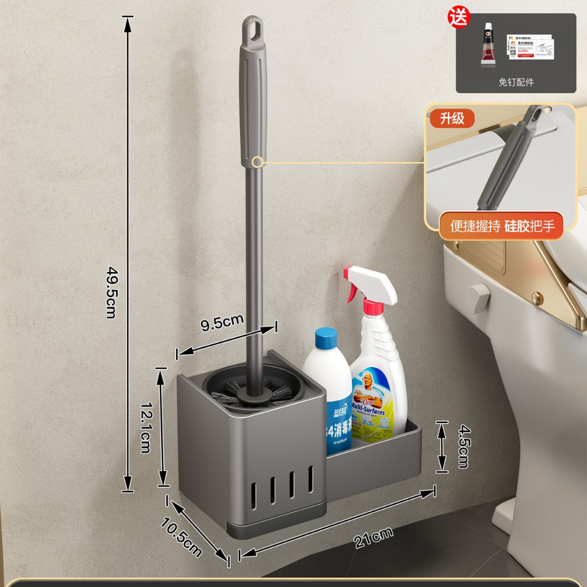 • [물받이 및 확장된 실리콘 손잡이로 업그레이드] 건그레이 변기솔 수납선반