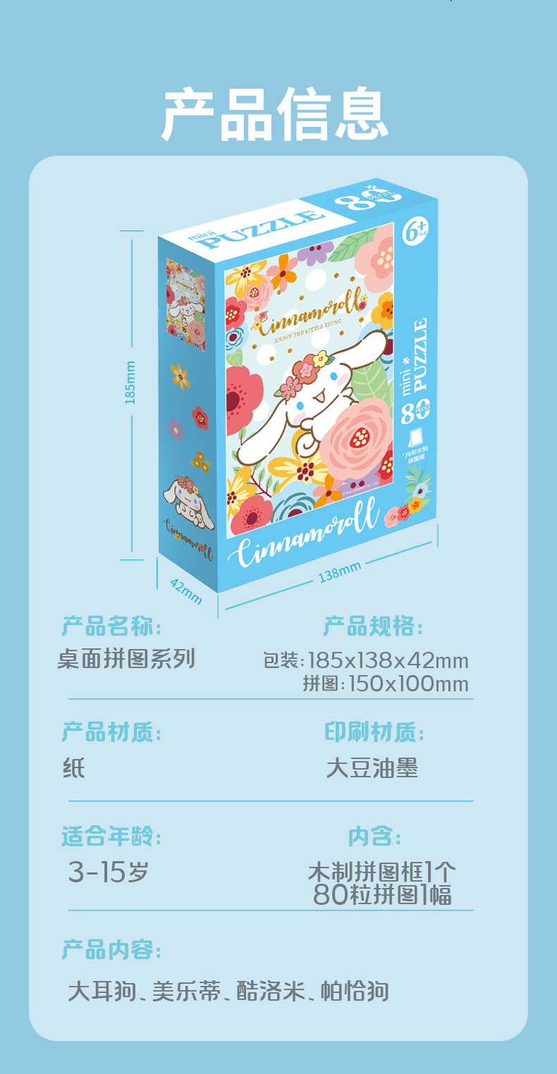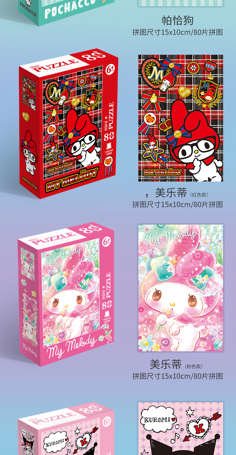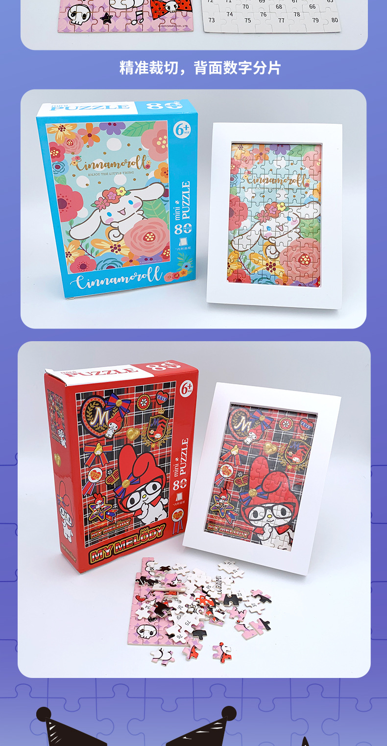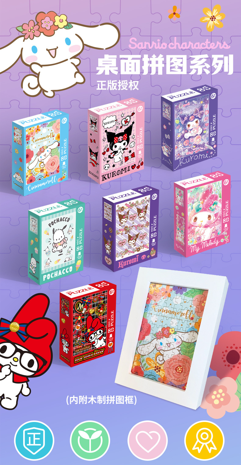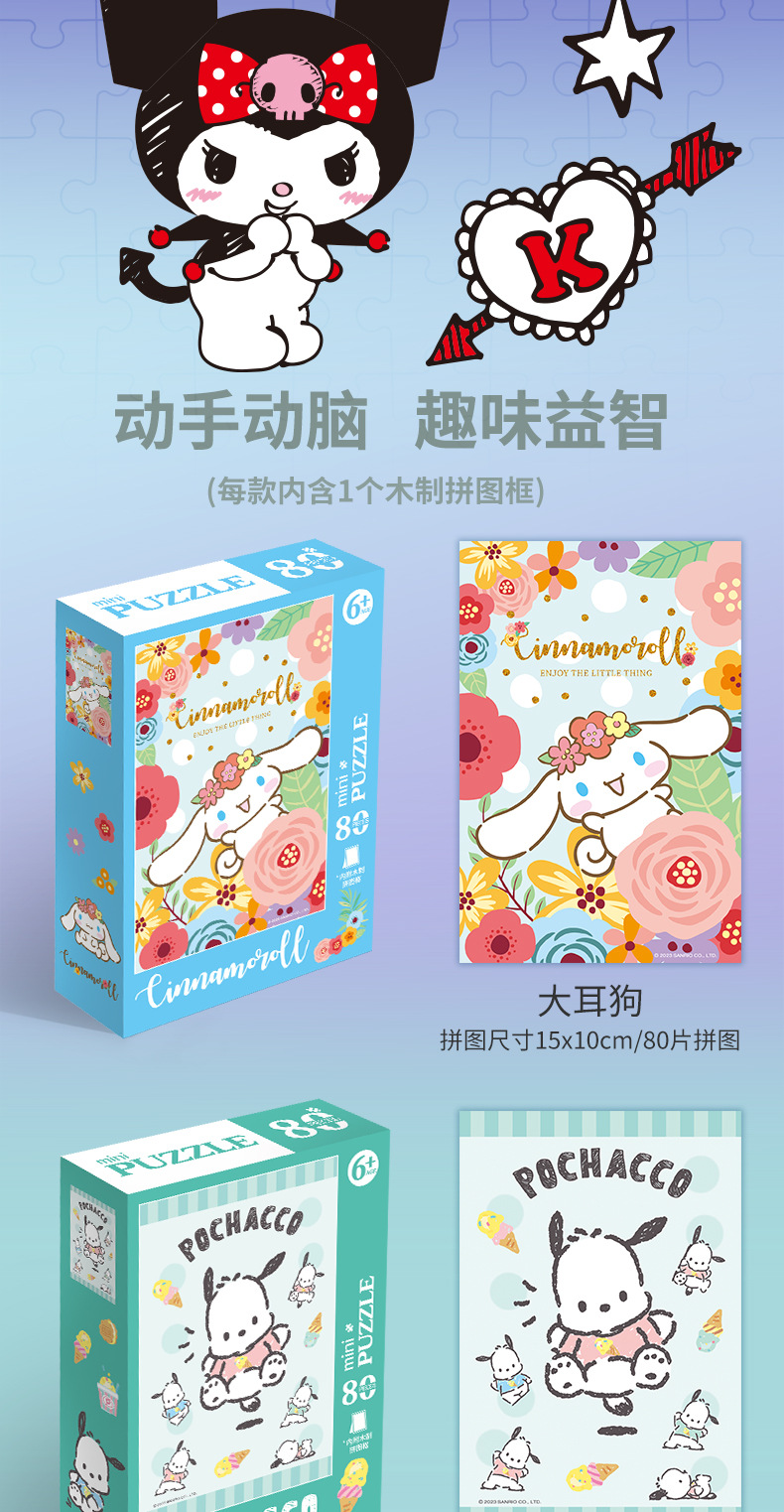 컬로 데스크탑 직소 퍼즐 프레임 메를로 큰 귀 개 애니메이션 장난감 패션 80 조각 종이 직소 퍼즐 조각스토어 가기