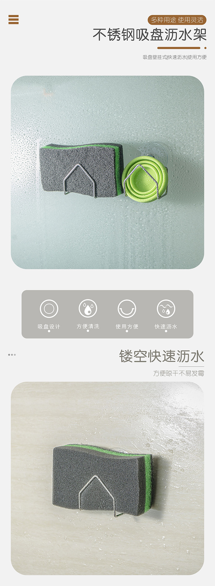 스테인레스 스틸 싱크 스폰지 랙 가정용 펀치없는 싱크 스토리지 랙 스틸 와이어 볼 Scavenkpad 스토리지 빨판 디퍼스토어 가기