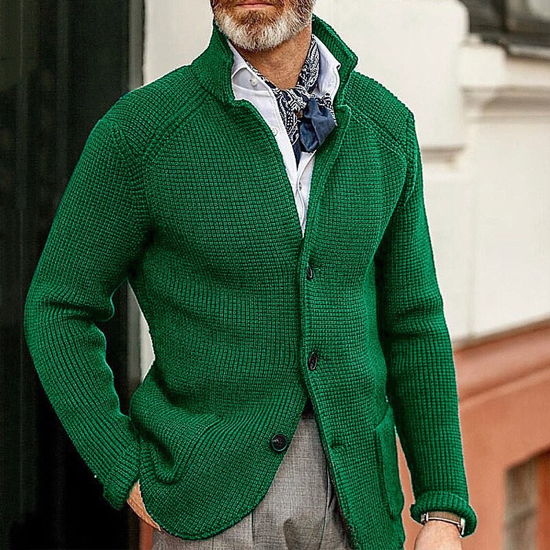 솔리드 컬러 스탠드 칼라 크로스보더 패션 신작 남성 캐주얼 긴팔 니트 가디건 데일리 유럽 및 미국 슬림핏 스웨터