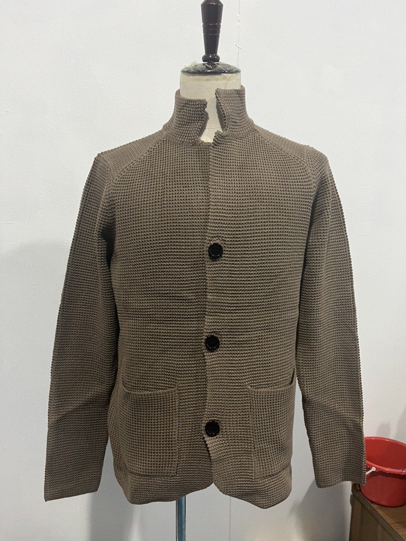 솔리드 컬러 스탠드 칼라 크로스보더 패션 신작 남성 캐주얼 긴팔 니트 가디건 데일리 유럽 및 미국 슬림핏 스웨터스토어 가기