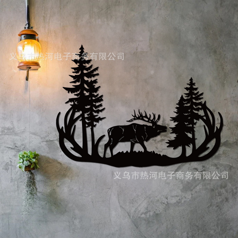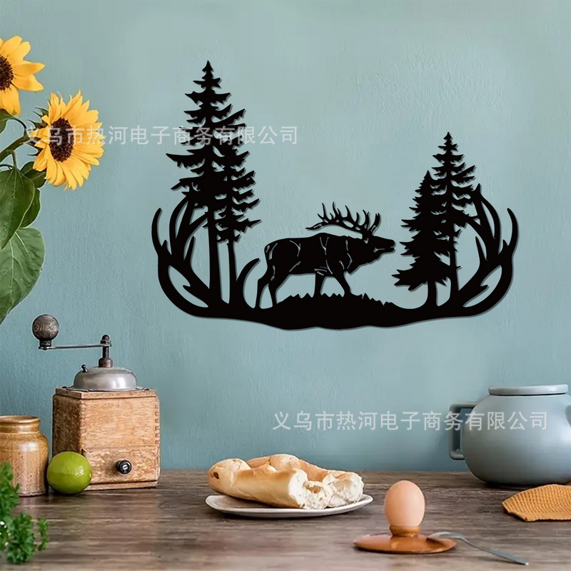 엘크 벽 예술 금속 엘크 장면 야생 동물 벽 예술 야생 동물 장식 홈 장식스토어 가기