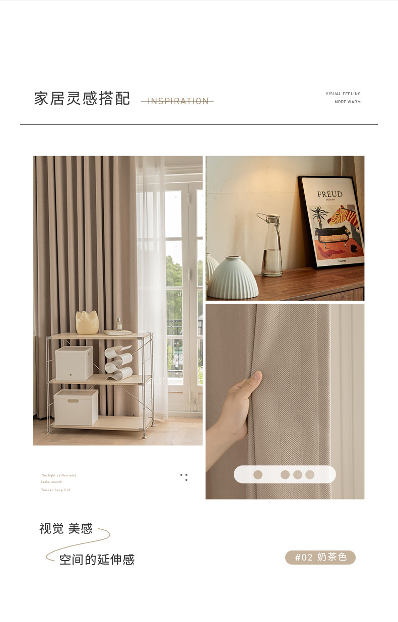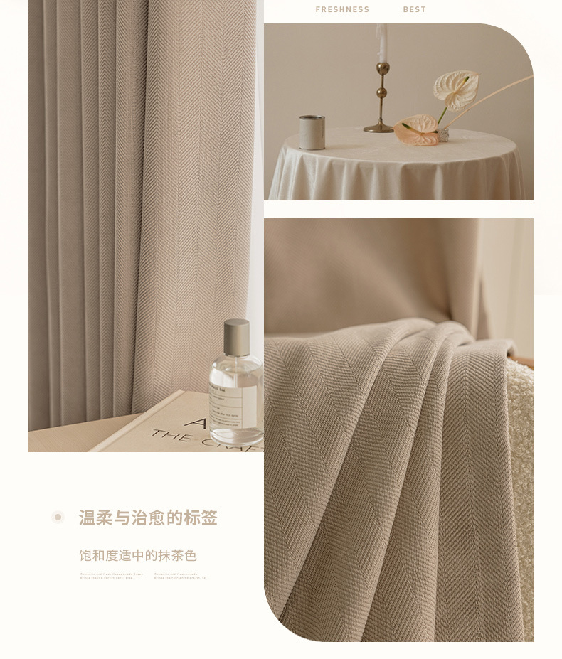 Chenille 커튼 헤링본 높은 블랙 아웃 커튼 밀크 티 컬러 Matcha 그린 간단한 두꺼운 단색 커튼 Keqiao